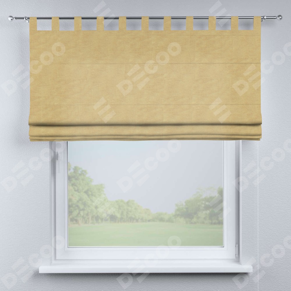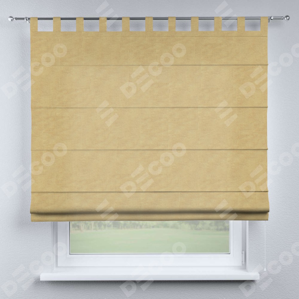 Римская штора производителя «Cortin», используется для проёма, пошита из ткани канвас абрикосовый, артикул ткани v-448. Данная модель пошита на петлях, комплектуется на выбор круглым карнизом и подходит для монтажа на стену. Римская штора на петлях имеет простую систему регулировки высоты, отличительным преимуществом данной модели является простой способ монтажа. Достаточно повесить ее на трубу и штора готова!