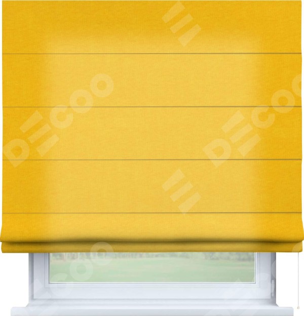 Римская штора производителя «Cortin», используется для проёма, пошита из ткани канвас желтый, артикул ткани v-344. Имеет универсальный механизм и подходит для монтажа: на потолок, на стену и в нишу.