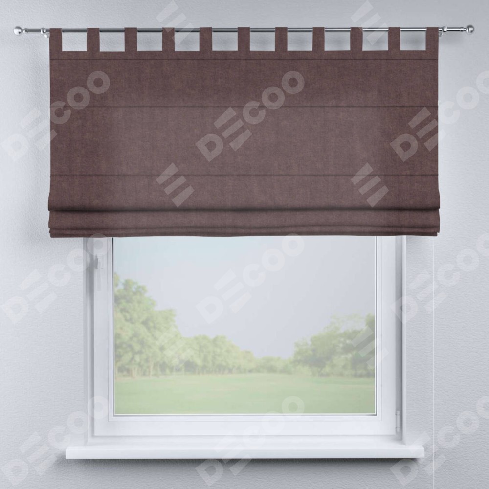 Римская штора производителя «Cortin», используется для проёма, пошита из ткани канвас махагон, артикул ткани v-37. Данная модель пошита на петлях, комплектуется на выбор круглым карнизом и подходит для монтажа на стену. Римская штора на петлях имеет простую систему регулировки высоты, отличительным преимуществом данной модели является простой способ монтажа. Достаточно повесить ее на трубу и штора готова!