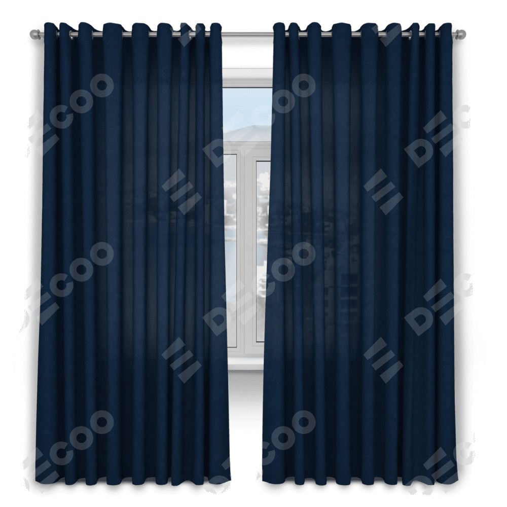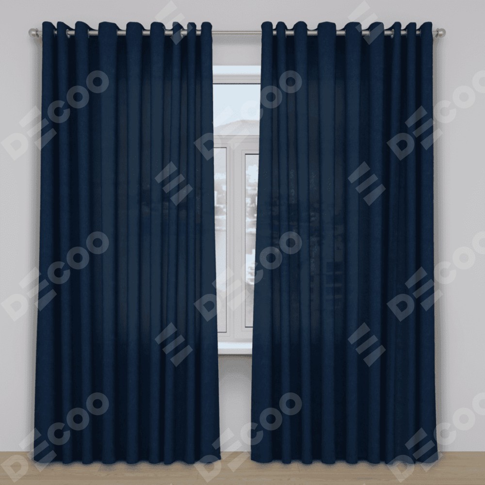 Комплект прямых штор, от производителя «Cortin», пошиты из ткани вельвет тёмно-синий, артикул ткани 14152. Данная модель пошита на люверсах, комплектуется на выбор круглым карнизом и подходит для монтажа на стену. Прямые шторы на люверсах шьются по стандарту с коэффициентом 1/2 (на 100 см. ширины проёма 200 см. ширины ткани), отличительным преимуществом данной модели является простой способ монтажа. Достаточно повесить ее на трубу и штора готова!