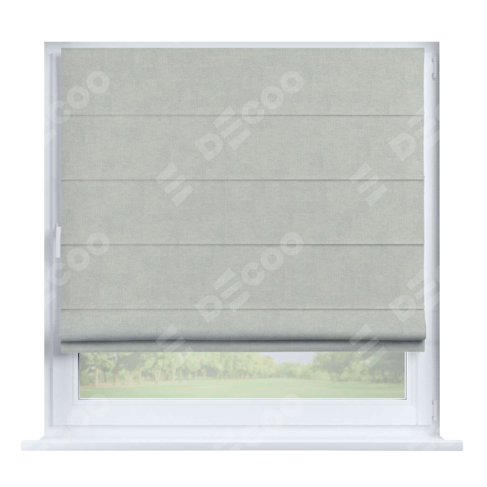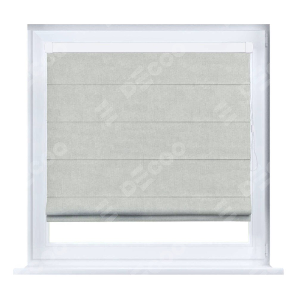 Римская штора производителя «Cortin», устанавливается на створку окна, пошита из ткани канвас светло-серый, артикул v-371. Штора шьётся по индивидуальным размерам, для данного типа римской шторы возможная ширина от 35 до 150 см., высота до 250 см.