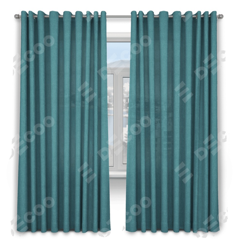 Шторы на люверсах ткань лён бирюзовый отлично подойдёт для интерьера загородный дом, спальня и кабинет.