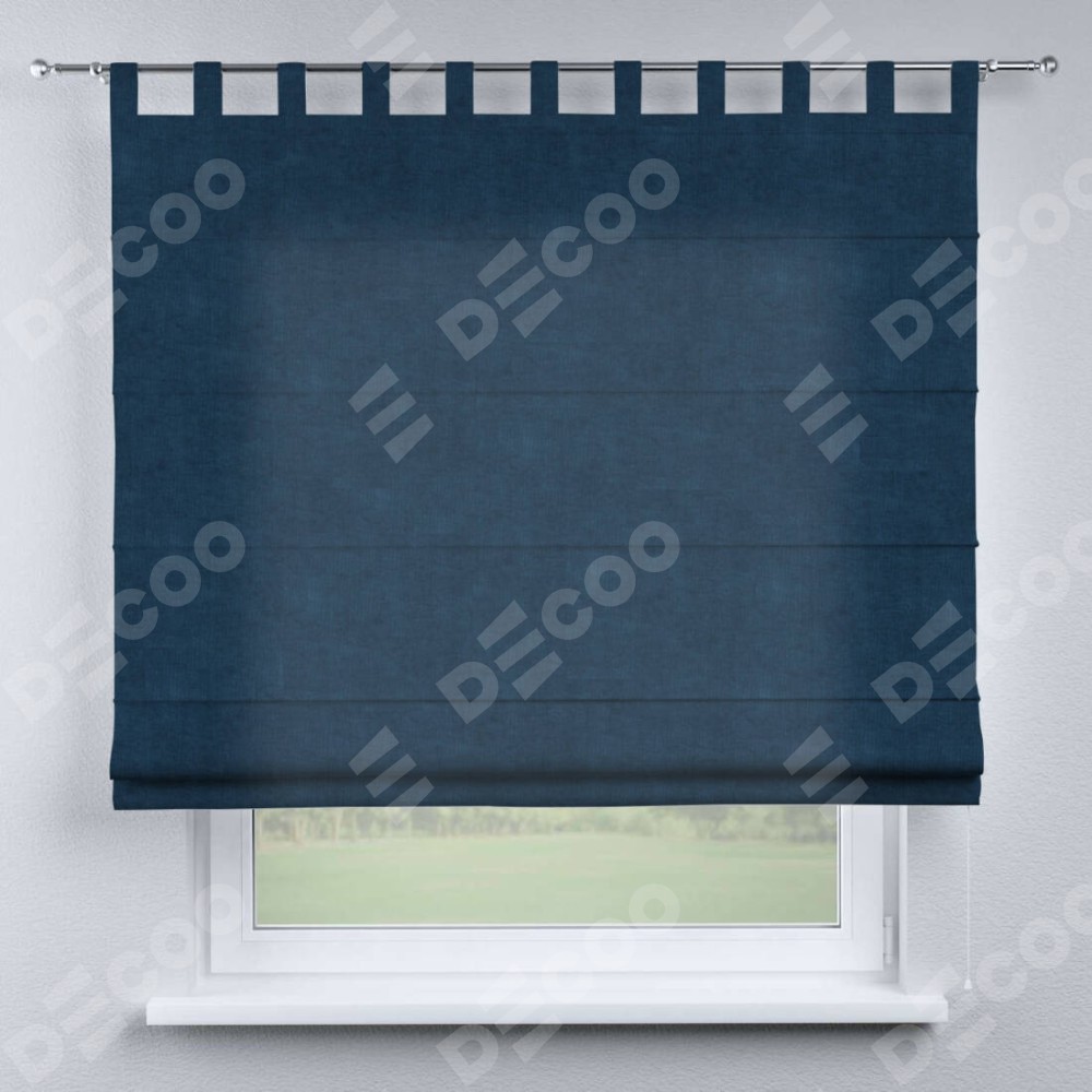 Римская штора производителя «Cortin», используется для проёма, пошита из ткани канвас синий, артикул ткани v-573. Данная модель пошита на петлях, комплектуется на выбор круглым карнизом и подходит для монтажа на стену. Римская штора на петлях имеет простую систему регулировки высоты, отличительным преимуществом данной модели является простой способ монтажа. Достаточно повесить ее на трубу и штора готова!