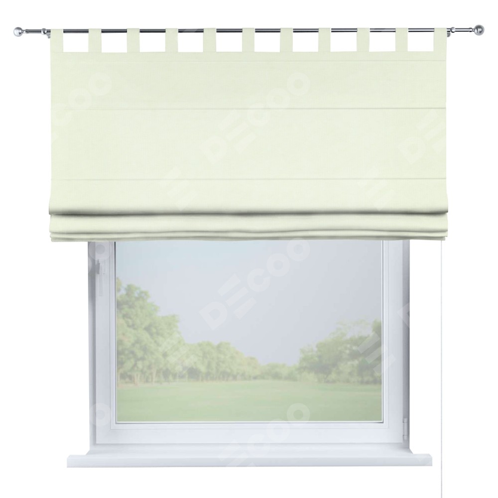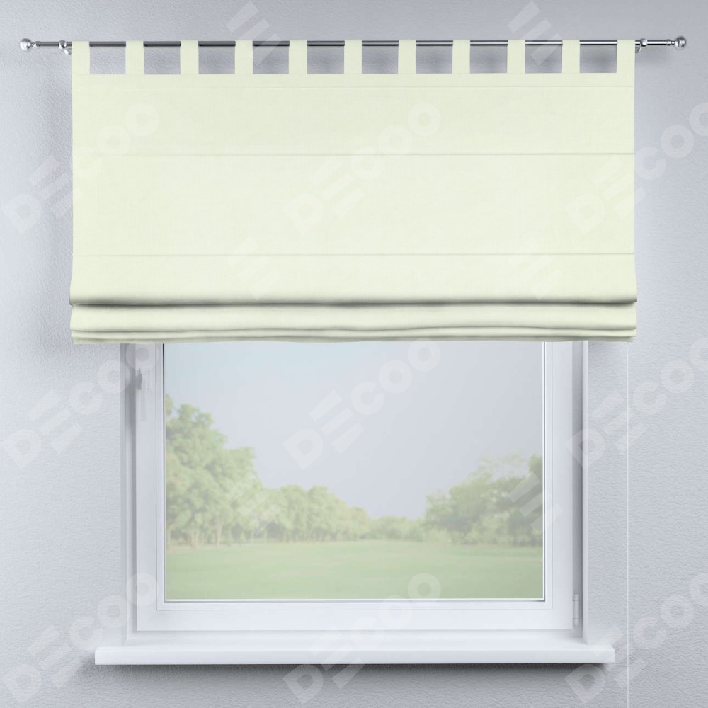 Римская штора производителя «Cortin», используется для проёма, пошита из ткани канвас сливочный, артикул ткани v-94. Данная модель пошита на петлях, комплектуется на выбор круглым карнизом и подходит для монтажа на стену. Римская штора на петлях имеет простую систему регулировки высоты, отличительным преимуществом данной модели является простой способ монтажа. Достаточно повесить ее на трубу и штора готова!
