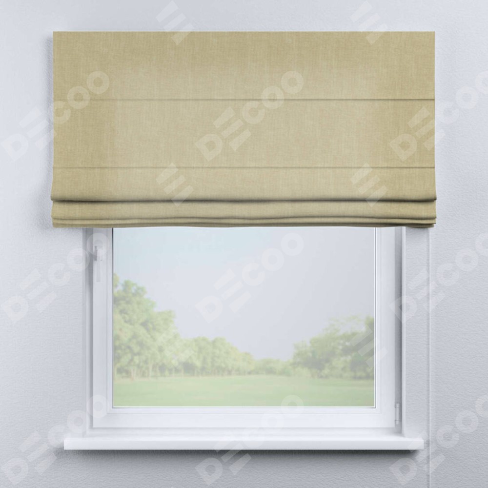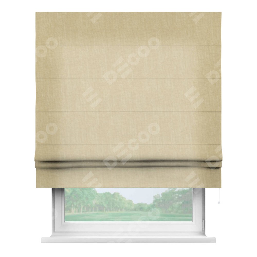 Римская штора производителя «Cortin», используется для проёма, пошита из ткани канвас тёмно-бежевый, артикул ткани v-196. Имеет универсальный механизм и подходит для монтажа: на потолок, на стену и в нишу.