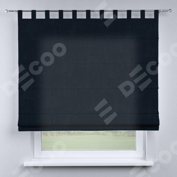 Римская штора производителя «Cortin», используется для проёма, пошита из ткани канвас тёмно-синий, артикул ткани v-206. Данная модель пошита на петлях, комплектуется на выбор круглым карнизом и подходит для монтажа на стену. Римская штора на петлях имеет простую систему регулировки высоты, отличительным преимуществом данной модели является простой способ монтажа. Достаточно повесить ее на трубу и штора готова!