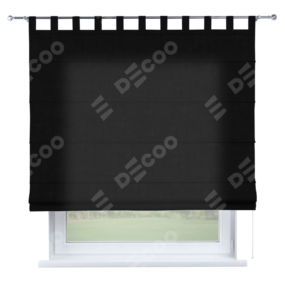 Римская штора производителя «Cortin», используется для проёма, пошита из ткани канвас черный, артикул ткани v-194. Данная модель пошита на петлях, комплектуется на выбор круглым карнизом и подходит для монтажа на стену. Римская штора на петлях имеет простую систему регулировки высоты, отличительным преимуществом данной модели является простой способ монтажа. Достаточно повесить ее на трубу и штора готова!