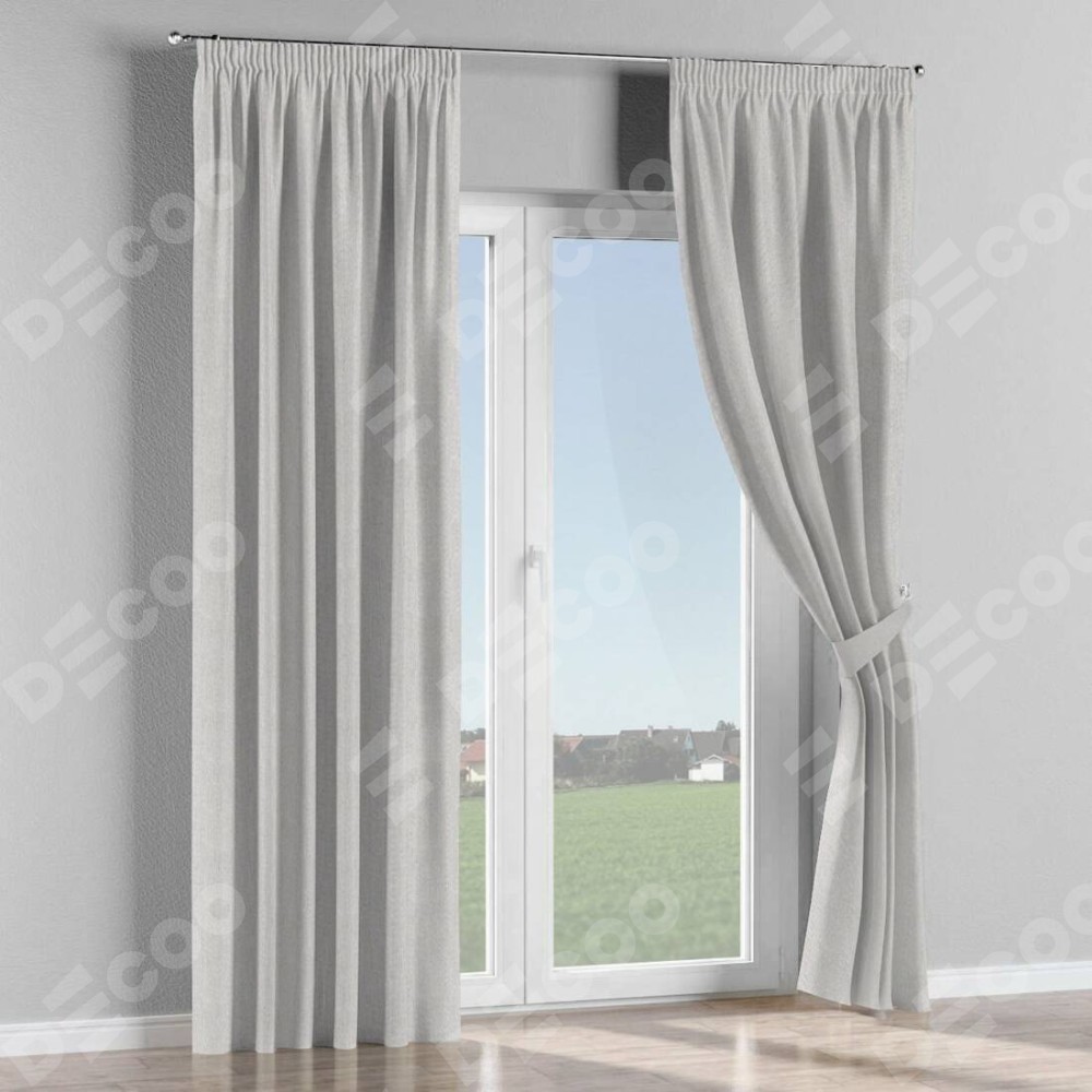 Комплект прямых штор, от производителя «Cortin», пошиты из ткани лён димаут светло-бежевый, артикул ткани 90993. С изнаночной стороны в верхней части штор пристрачивается шторная лента с декоративными складками «Карандаш». Для создания элегантных складок прямые шторы шьются по стандарту с коэффициентом 1:2 (на 100 см. ширины проёма 200 см. ширины ткани).