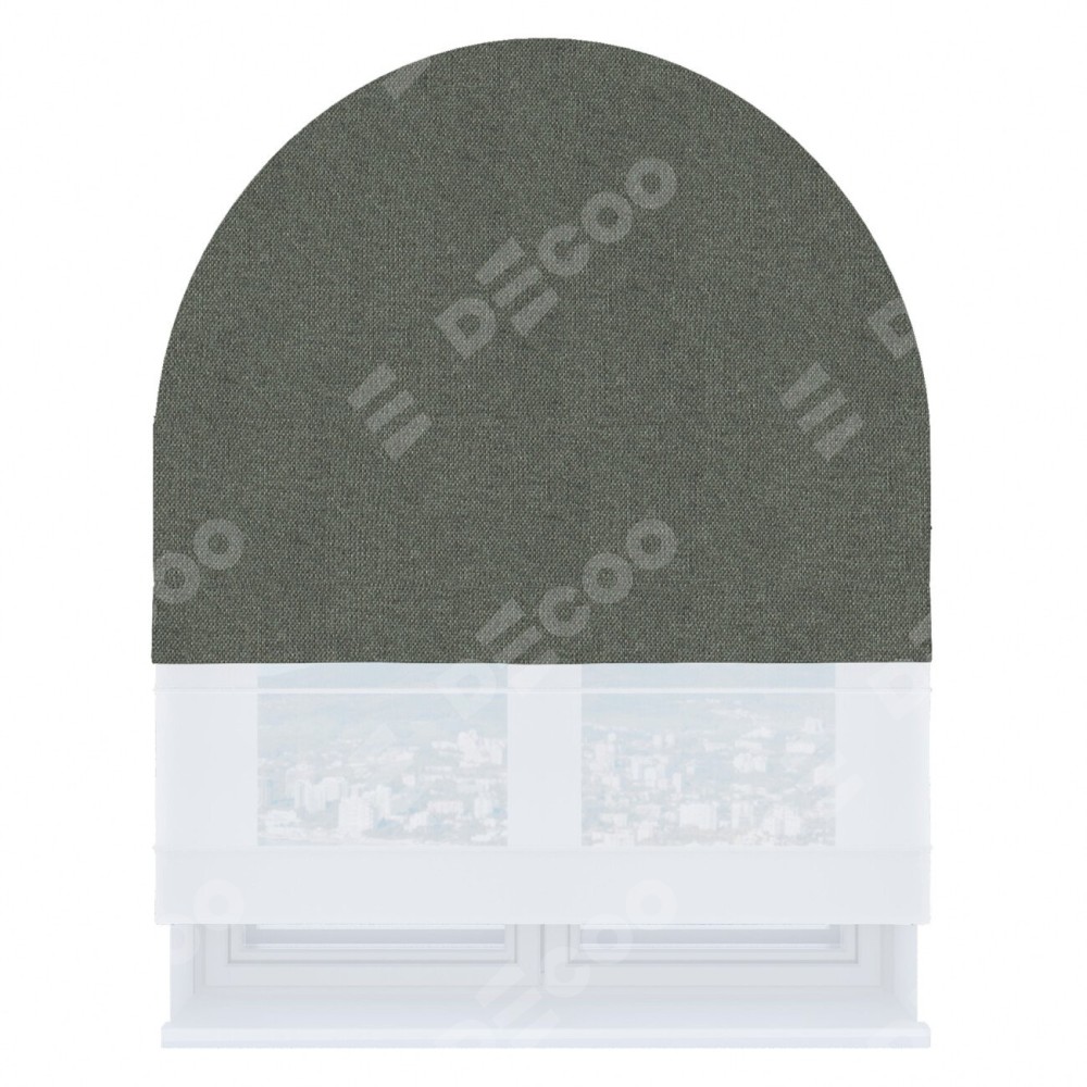 Римская штора день-ночь производителя «Cortin», используется для арочного проёма, пошита из двух полотен, с лицевой стороны лён димаут тёмно-серый артикул 91011, вторая ткань тюль (по стандарту комплектуется тюль белого цвета артикул V-01). Штора шьётся по индивидуальным размерам, для данного типа римской шторы возможная ширина от 60 до 300 см. Удобное управление каждой шторой отдельно.