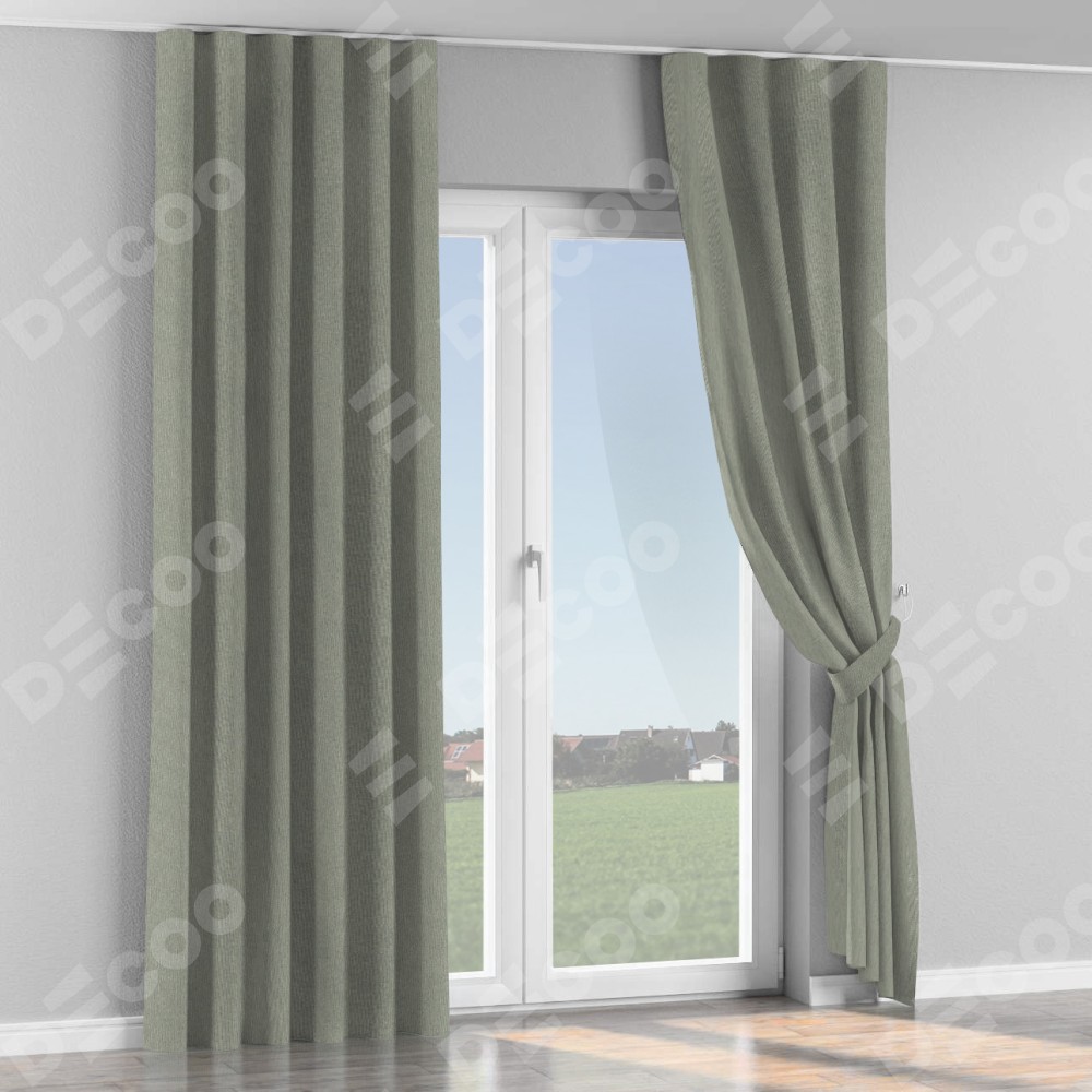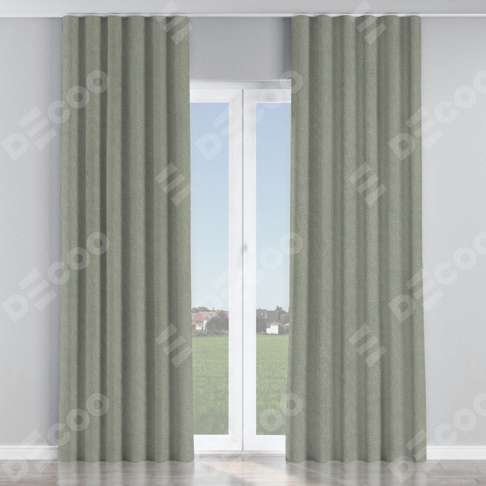 Комплект прямых штор, от производителя «Cortin», пошиты из ткани лён димаут серый, артикул ткани 91009. С изнаночной стороны в верхней части штор пристрачивается шторная лента с декоративными складками «Волна». Для создания элегантных складок прямые шторы шьются по стандарту с коэффициентом 1:2 (на 100 см. ширины проёма 200 см. ширины ткани).