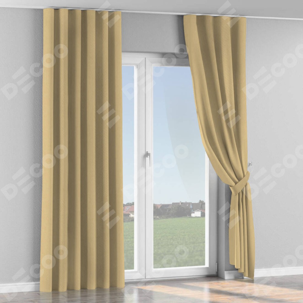 Комплект прямых штор, от производителя «Cortin», пошиты из ткани канвас бежевый, артикул ткани v-96. С изнаночной стороны в верхней части штор пристрачивается шторная лента с декоративными складками «Волна». Для создания элегантных складок прямые шторы шьются по стандарту с коэффициентом 1:2 (на 100 см. ширины проёма 200 см. ширины ткани).