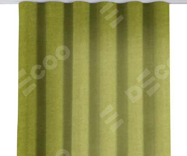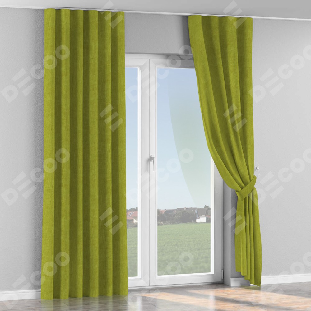 Комплект прямых штор, от производителя «Cortin», пошиты из ткани канвас зелёное яблоко, артикул ткани v-370. С изнаночной стороны в верхней части штор пристрачивается шторная лента с декоративными складками «Волна». Для создания элегантных складок прямые шторы шьются по стандарту с коэффициентом 1:2 (на 100 см. ширины проёма 200 см. ширины ткани).