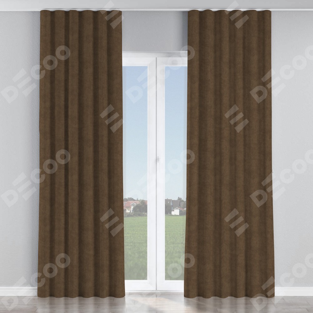 Комплект прямых штор, от производителя «Cortin», пошиты из ткани канвас коричневый, артикул ткани v-29. С изнаночной стороны в верхней части штор пристрачивается шторная лента с декоративными складками «Волна». Для создания элегантных складок прямые шторы шьются по стандарту с коэффициентом 1:2 (на 100 см. ширины проёма 200 см. ширины ткани).