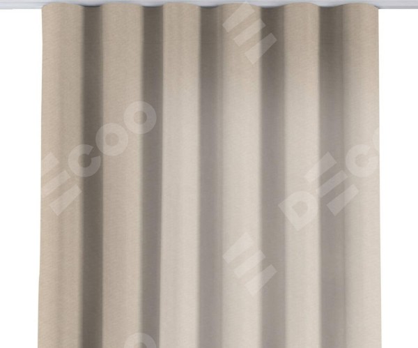 Комплект прямых штор, от производителя «Cortin», пошиты из ткани канвас кофе с молоком, артикул ткани v-07. С изнаночной стороны в верхней части штор пристрачивается шторная лента с декоративными складками «Волна». Для создания элегантных складок прямые шторы шьются по стандарту с коэффициентом 1:2 (на 100 см. ширины проёма 200 см. ширины ткани).