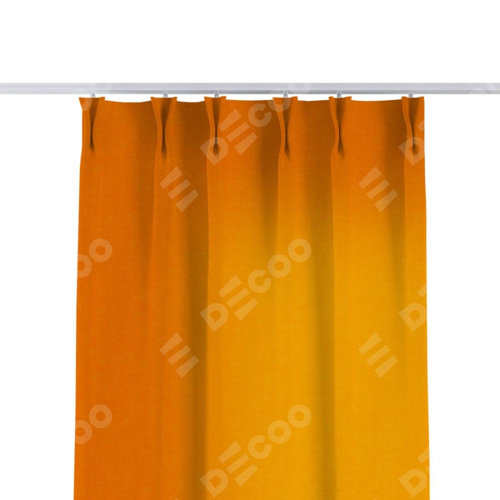 Комплект прямых штор, от производителя «Cortin», пошиты из ткани канвас оранжевый, артикул ткани v-106. С изнаночной стороны в верхней части штор пристрачивается шторная лента с декоративными складками «Кустик». Для создания элегантных складок прямые шторы шьются по стандарту с коэффициентом 1:2 (на 100 см. ширины проёма 200 см. ширины ткани).