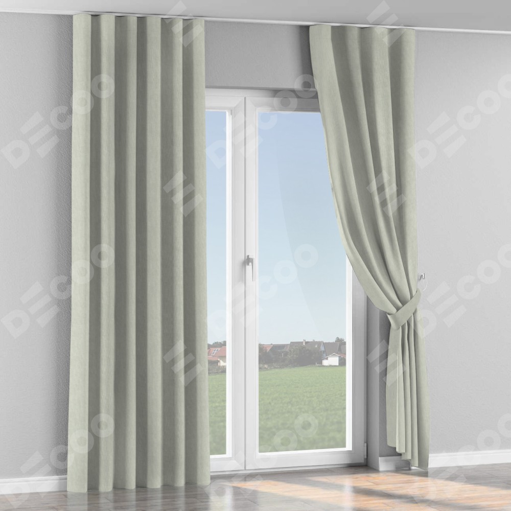 Комплект прямых штор, от производителя «Cortin», пошиты из ткани канвас светло-серый, артикул ткани v-371. С изнаночной стороны в верхней части штор пристрачивается шторная лента с декоративными складками «Волна». Для создания элегантных складок прямые шторы шьются по стандарту с коэффициентом 1:2 (на 100 см. ширины проёма 200 см. ширины ткани).