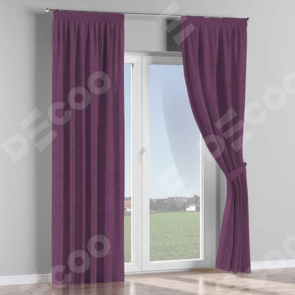 Комплект прямых штор, от производителя «Cortin», пошиты из ткани канвас сиреневый, артикул ткани v-98. С изнаночной стороны в верхней части штор пристрачивается шторная лента с декоративными складками «Карандаш». Для создания элегантных складок прямые шторы шьются по стандарту с коэффициентом 1:2 (на 100 см. ширины проёма 200 см. ширины ткани).