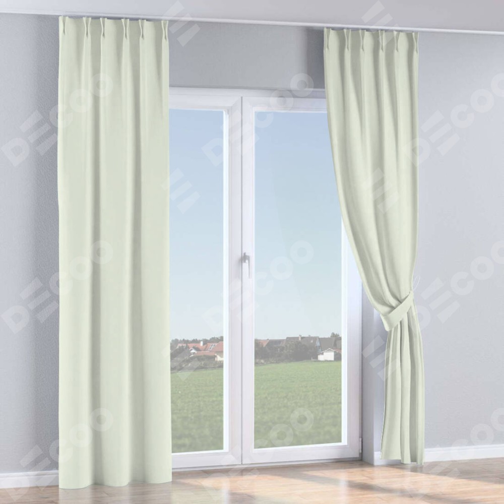 Комплект прямых штор, от производителя «Cortin», пошиты из ткани канвас сливочный, артикул ткани v-94. С изнаночной стороны в верхней части штор пристрачивается шторная лента с декоративными складками «Кустик». Для создания элегантных складок прямые шторы шьются по стандарту с коэффициентом 1:2 (на 100 см. ширины проёма 200 см. ширины ткани).