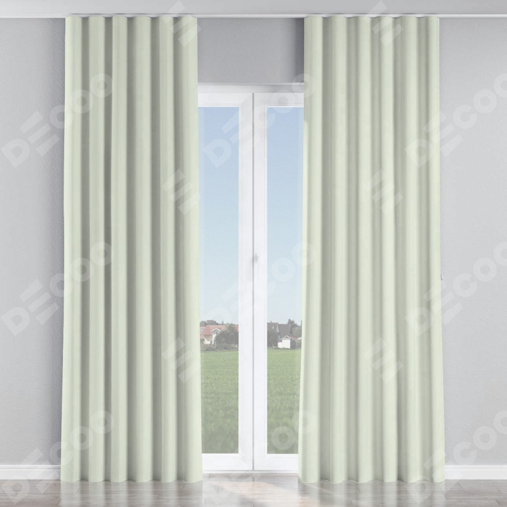 Комплект прямых штор, от производителя «Cortin», пошиты из ткани канвас сливочный, артикул ткани v-94. С изнаночной стороны в верхней части штор пристрачивается шторная лента с декоративными складками «Волна». Для создания элегантных складок прямые шторы шьются по стандарту с коэффициентом 1:2 (на 100 см. ширины проёма 200 см. ширины ткани).