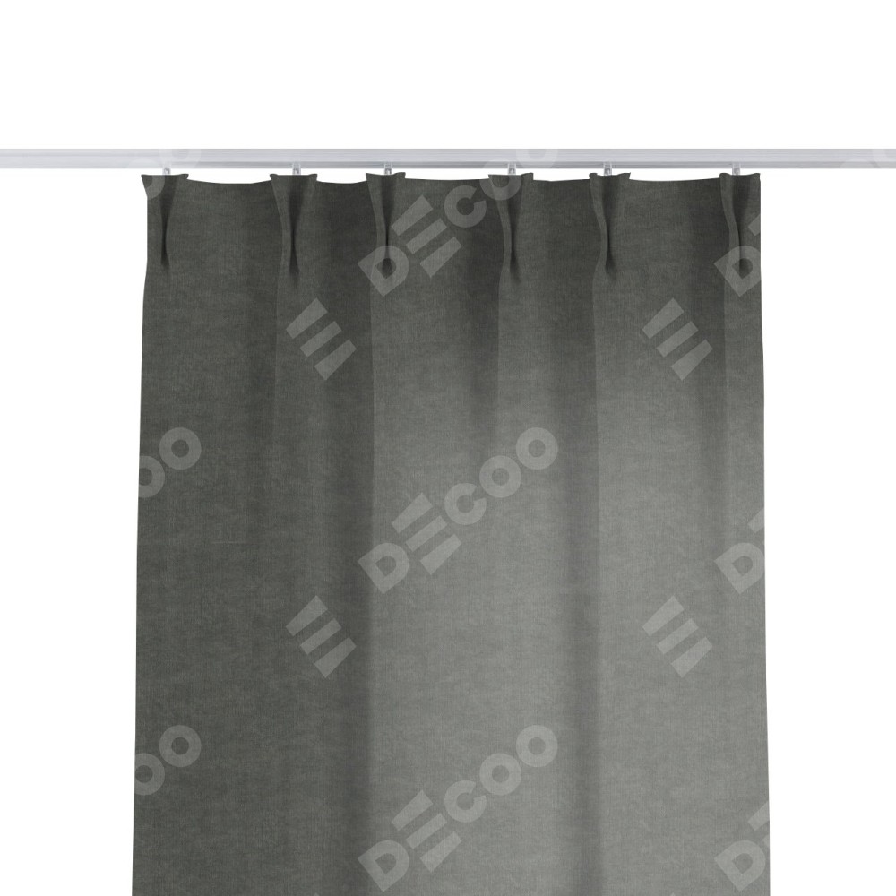Комплект прямых штор, от производителя «Cortin», пошиты из ткани канвас тёмно-серый, артикул ткани v-340. С изнаночной стороны в верхней части штор пристрачивается шторная лента с декоративными складками «Кустик». Для создания элегантных складок прямые шторы шьются по стандарту с коэффициентом 1:2 (на 100 см. ширины проёма 200 см. ширины ткани).
