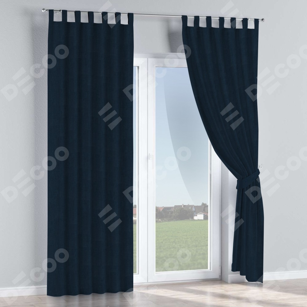 Комплект прямых штор, от производителя «Cortin», пошиты из ткани канвас тёмно-синий, артикул ткани v-206. Данная модель пошита на петлях, комплектуется на выбор круглым карнизом и подходит для монтажа на стену или потолок. Прямые шторы на петлях шьются по стандарту с коэффициентом 1/2 (на 100 см. ширины проёма 200 см. ширины ткани), отличительным преимуществом данной модели является простой способ монтажа. Достаточно повесить ее на трубу и штора готова!