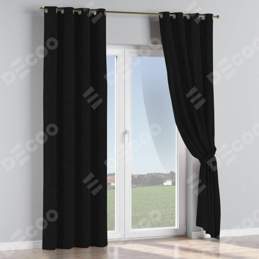 Комплект прямых штор, от производителя «Cortin», пошиты из ткани канвас черный, артикул ткани v-194. Данная модель пошита на люверсах, комплектуется на выбор круглым карнизом и подходит для монтажа на стену или потолок. Прямые шторы на люверсах шьются по стандарту с коэффициентом 1/2 (на 100 см. ширины проёма 200 см. ширины ткани), отличительным преимуществом данной модели является простой способ монтажа. Достаточно повесить ее на трубу и штора готова!