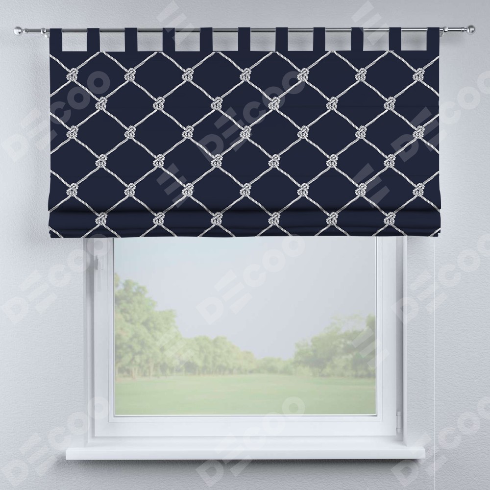 Римская штора производителя «Cortin», используется для проёма, пошита из ткани блэкаут с нанесением сублимационной печати «Морские веревки». Данная модель пошита на петлях, комплектуется на выбор круглым карнизом и подходит для монтажа на стену. Римская штора на петлях имеет простую систему регулировки высоты, отличительным преимуществом данной модели является простой способ монтажа. Достаточно повесить ее на трубу и штора готова!