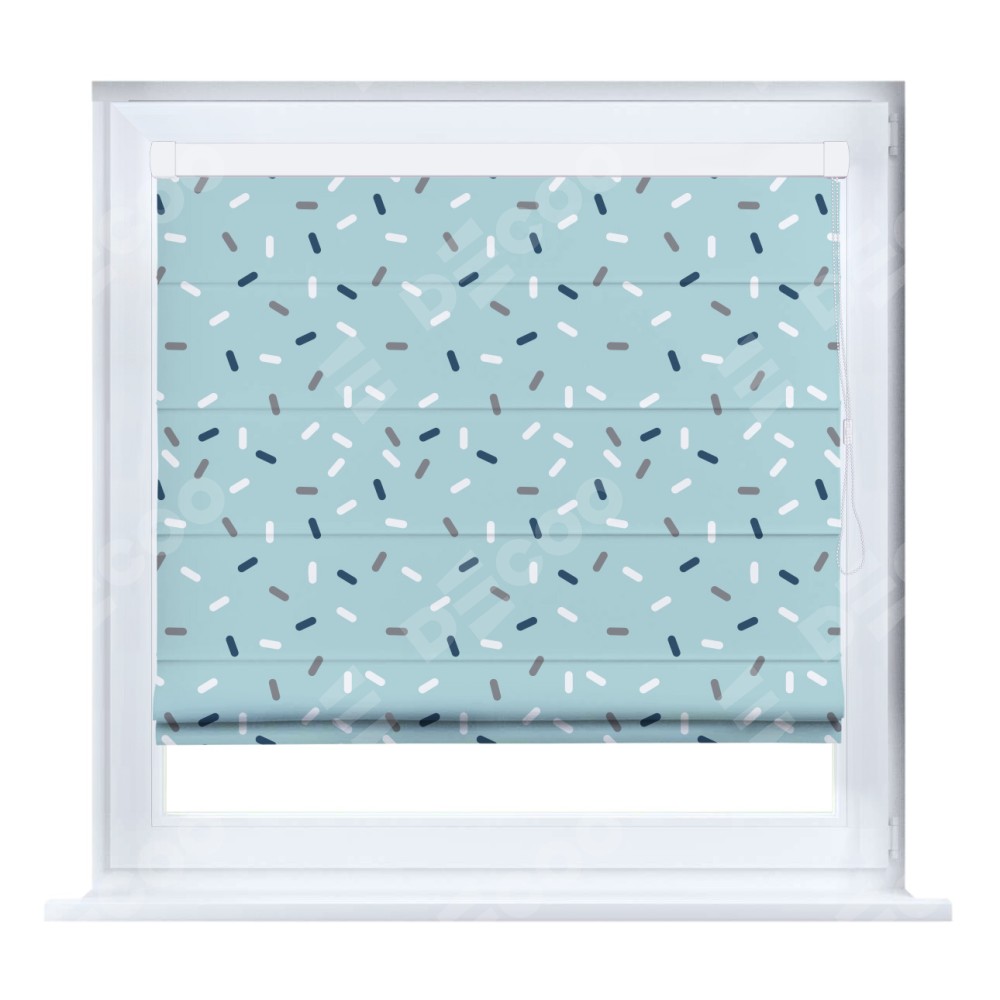 Римская штора производителя «Cortin», устанавливается на створку окна, пошита из ткани блэкаут с нанесением сублимационной печати «Короткие линии». Штора шьётся по индивидуальным размерам, для данного типа римской шторы возможная ширина от 35 до 150 см., высота до 250 см.