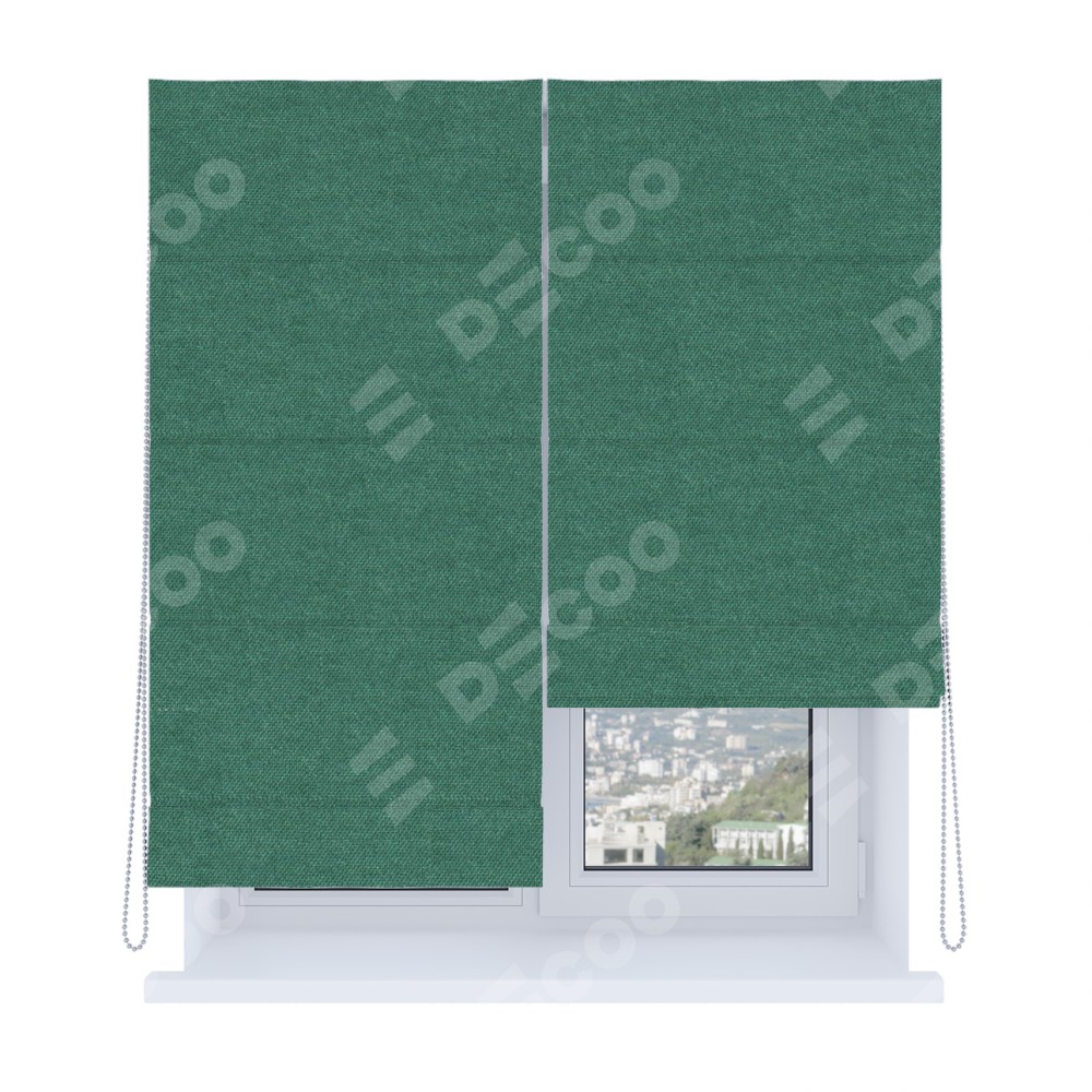 Римская штора производителя «Cortin», используется для проёма, пошита из ткани лён димаут светло-бирюзовый, артикул ткани 91005. Имеет универсальный механизм и подходит для монтажа: на потолок, на стену и в нишу. Удобное управление каждой шторой отдельно.