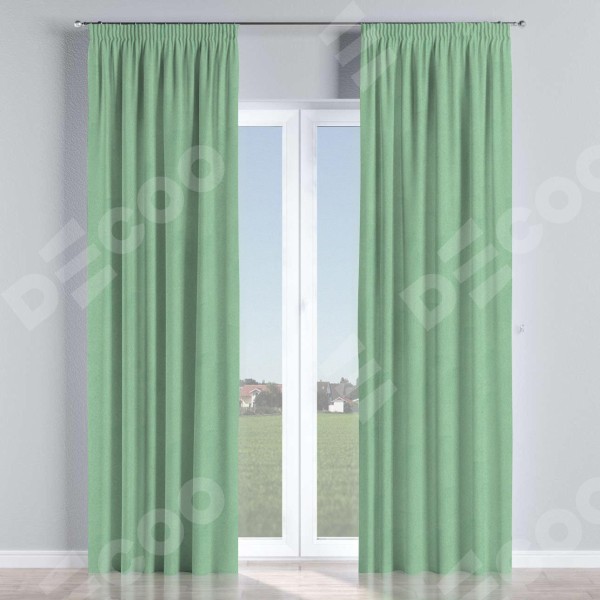 Комплект прямых штор, от производителя «Cortin», пошиты из ткани блэкаут однотонный ментоловый, артикул ткани 91572−1. С изнаночной стороны в верхней части штор пристрачивается шторная лента с декоративными складками «Карандаш». Для создания элегантных складок прямые шторы шьются по стандарту с коэффициентом 1:2 (на 100 см. ширины проёма 200 см. ширины ткани).