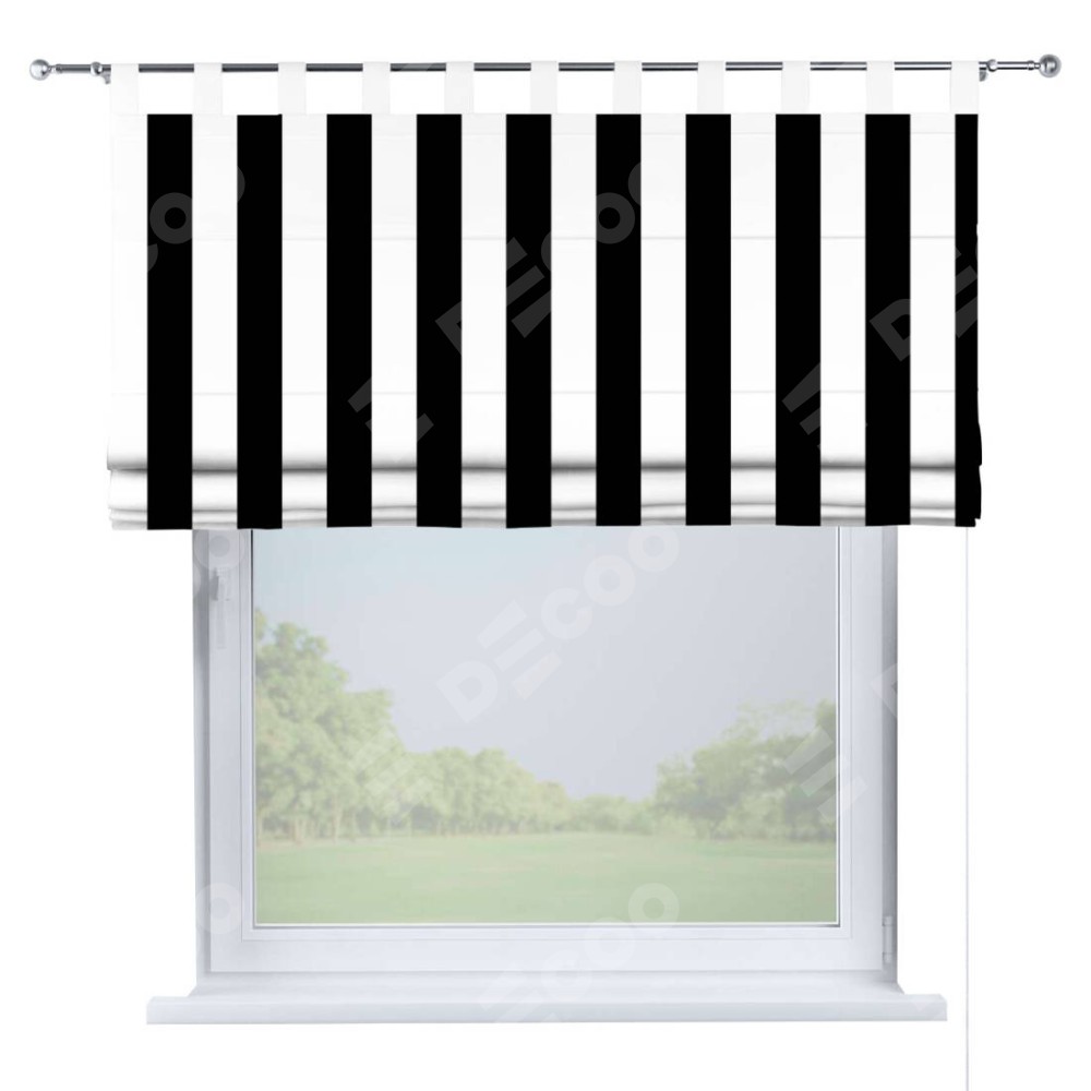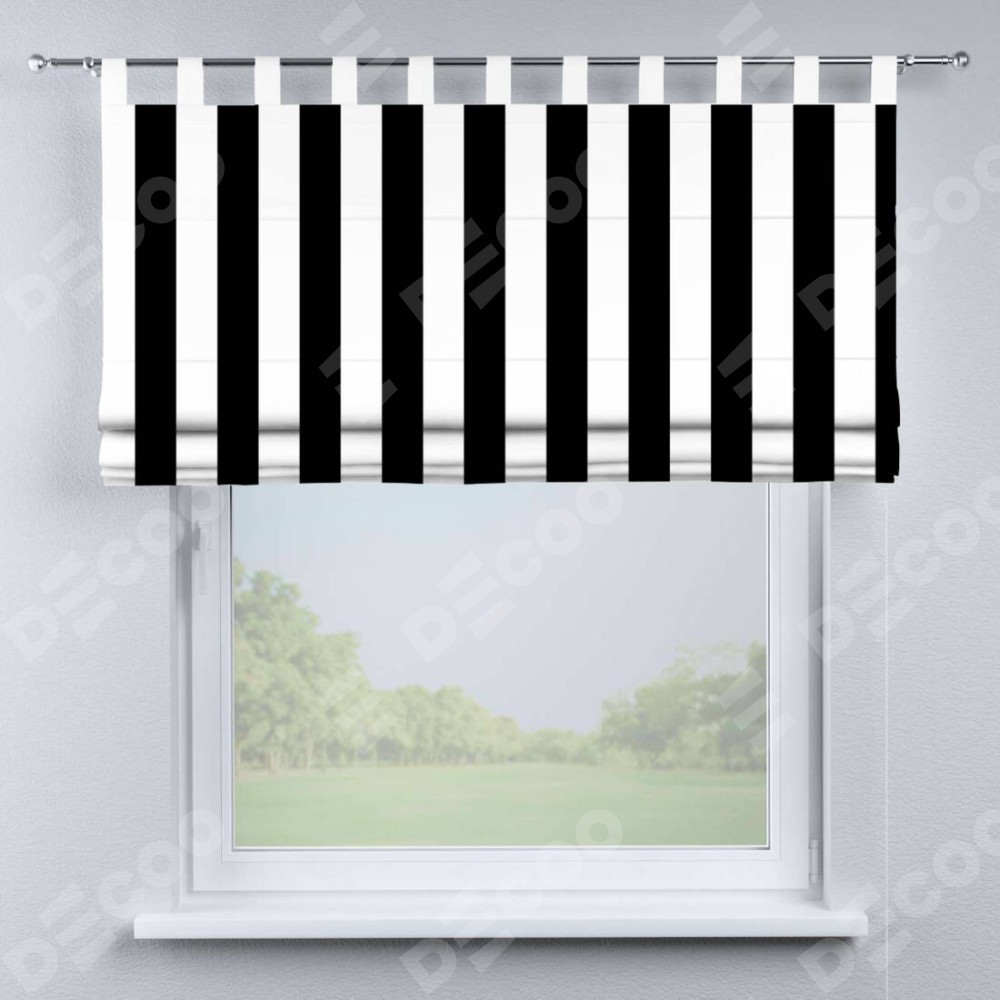 Римская штора производителя «Cortin», используется для проёма, пошита из ткани блэкаут с нанесением сублимационной печати «Черное и белое». Данная модель пошита на петлях, комплектуется на выбор круглым карнизом и подходит для монтажа на стену. Римская штора на петлях имеет простую систему регулировки высоты, отличительным преимуществом данной модели является простой способ монтажа. Достаточно повесить ее на трубу и штора готова!