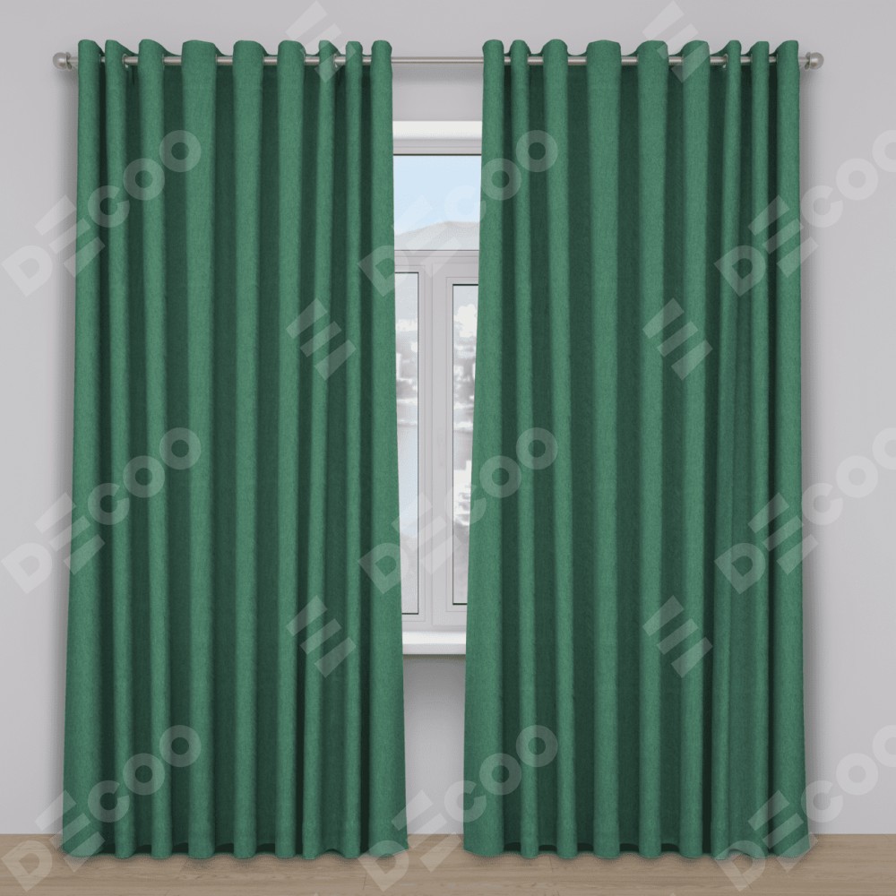 Комплект прямых штор, от производителя «Cortin», пошиты из ткани твид блэкаут зеленый, артикул ткани 21589. Данная модель пошита на люверсах, комплектуется на выбор круглым карнизом и подходит для монтажа на стену. Прямые шторы на люверсах шьются по стандарту с коэффициентом 1/2 (на 100 см. ширины проёма 200 см. ширины ткани), отличительным преимуществом данной модели является простой способ монтажа. Достаточно повесить ее на трубу и штора готова!