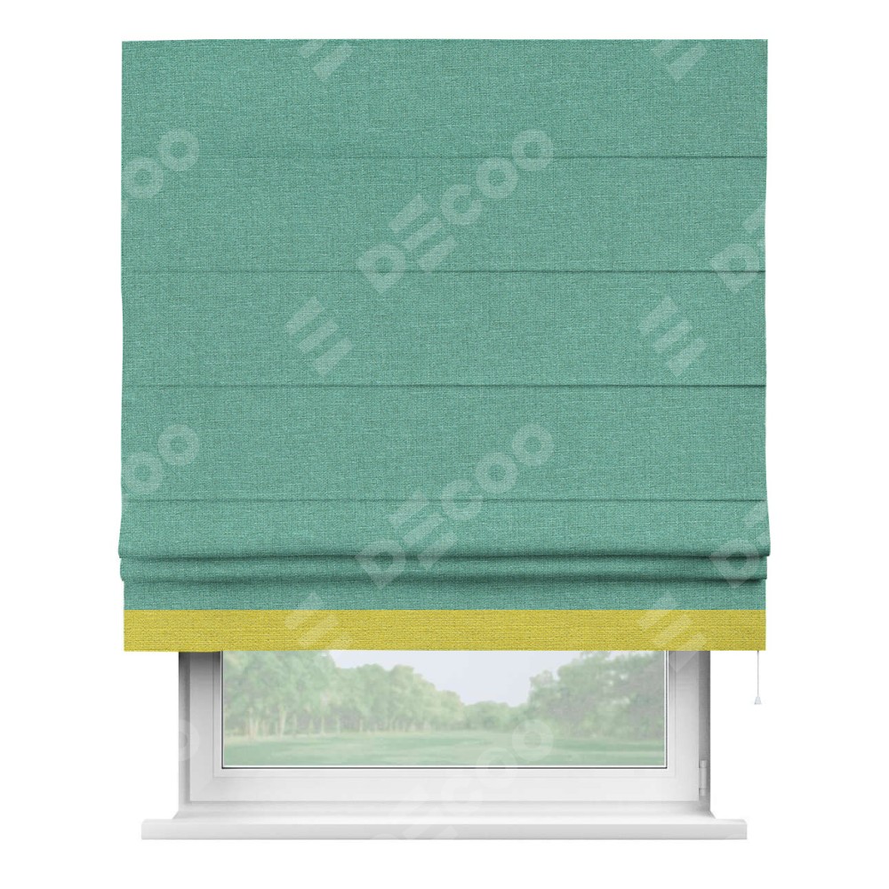 Римская штора «Кортин» с кантом Джестер, для проема, лён светло-бирюзовый
