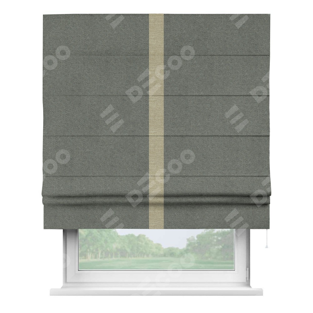 Римская штора «Кортин» с кантом Хайвэй, для проема, ткань лён димаут, тёмно-серый