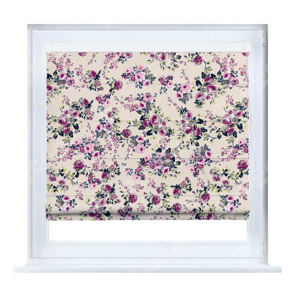 Римская штора «Кортин» на створку «Россыпь розовых цветов»