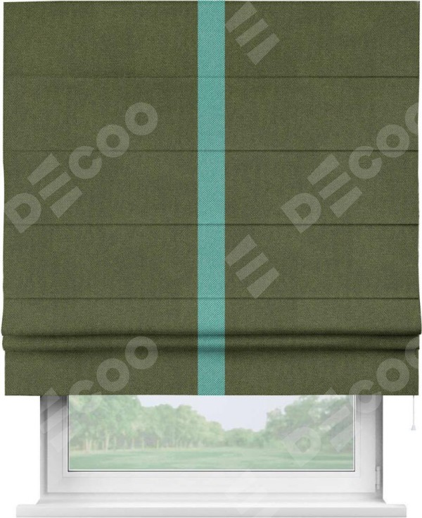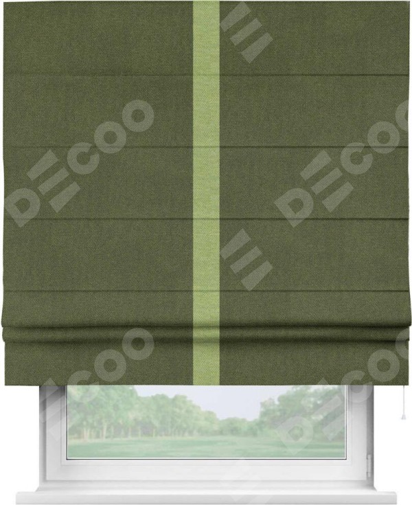 Римская штора «Кортин» для проема, лён димаут салатовый с кантом Хайвэй