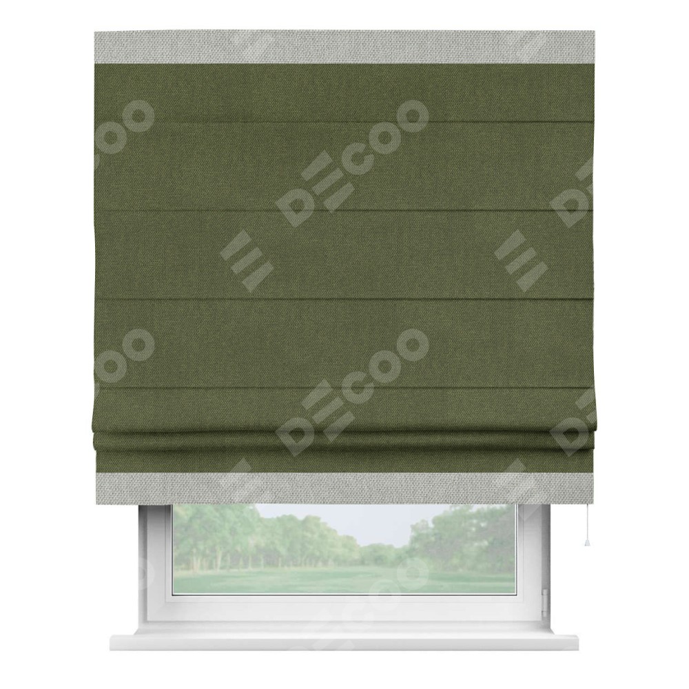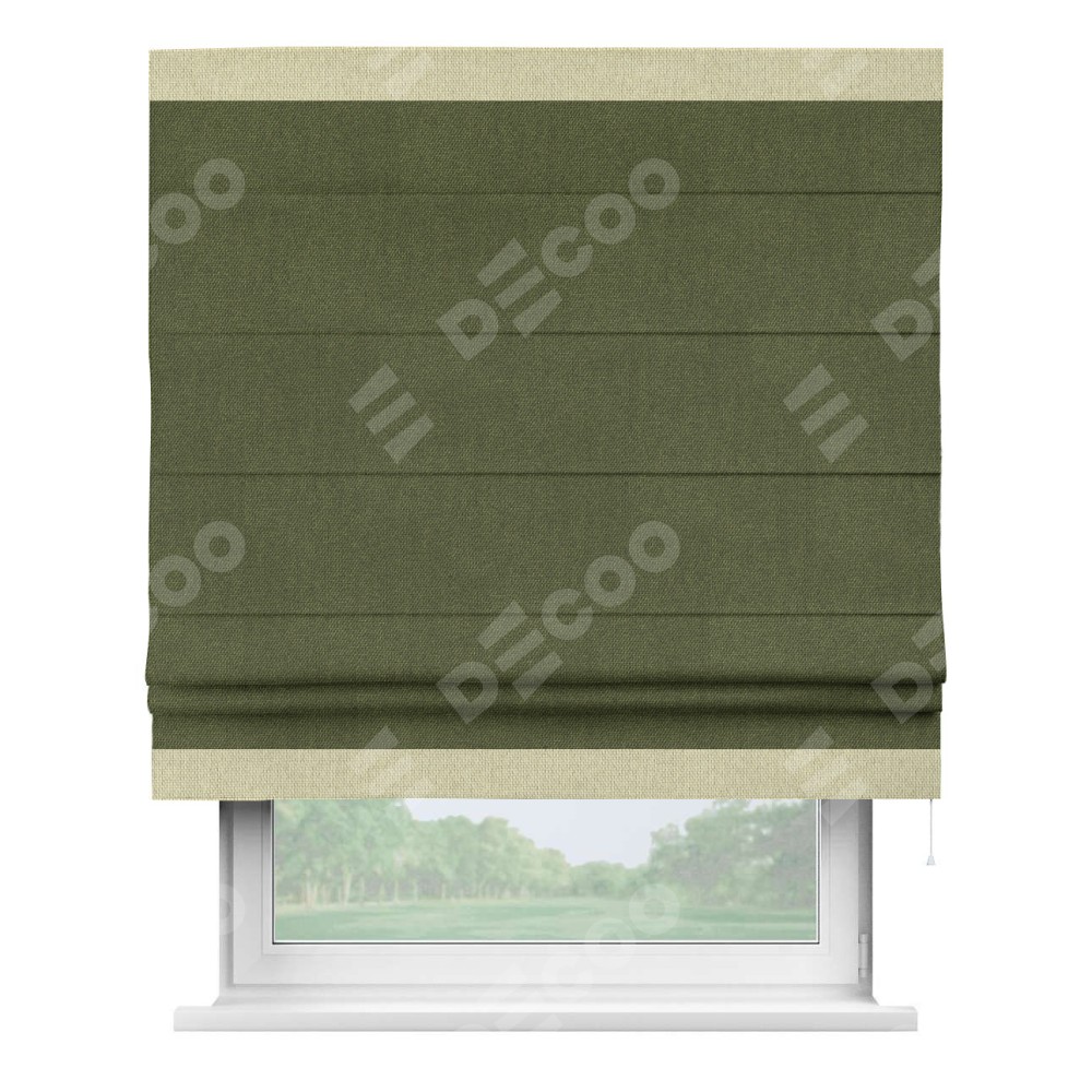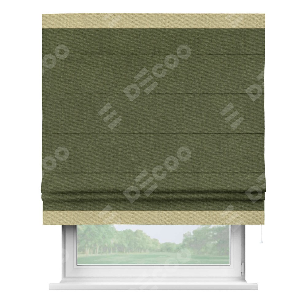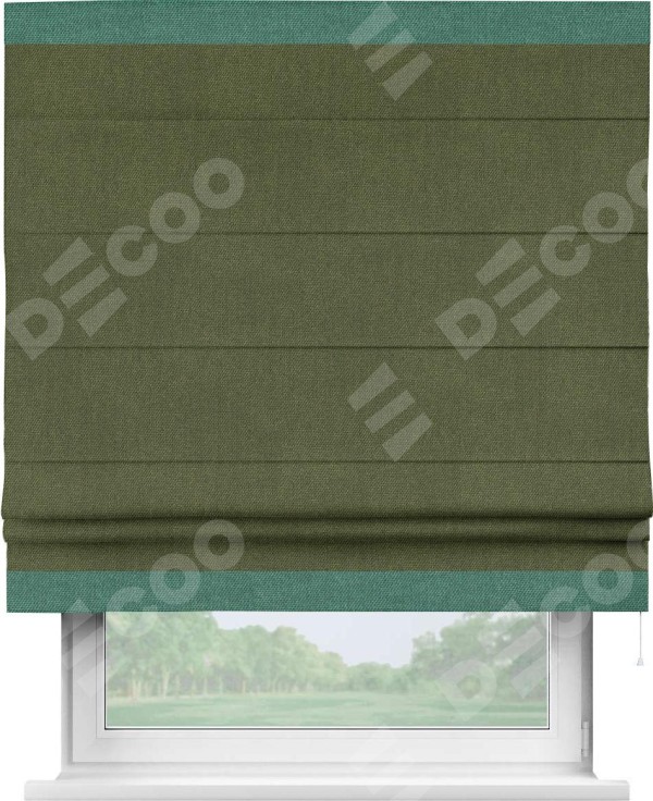 Римская штора «Кортин» для проема, лён димаут салатовый с кантом Горизонт