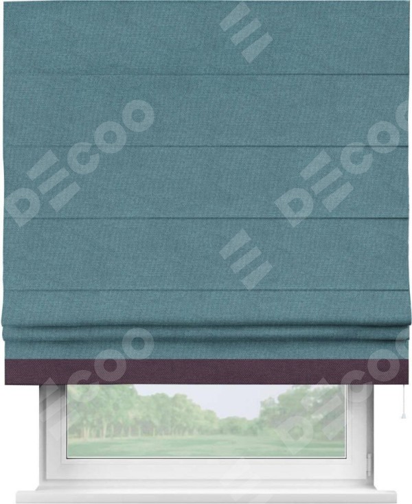 Римская штора «Кортин» для проема, лён димаут светло-синий с кантом Джестер