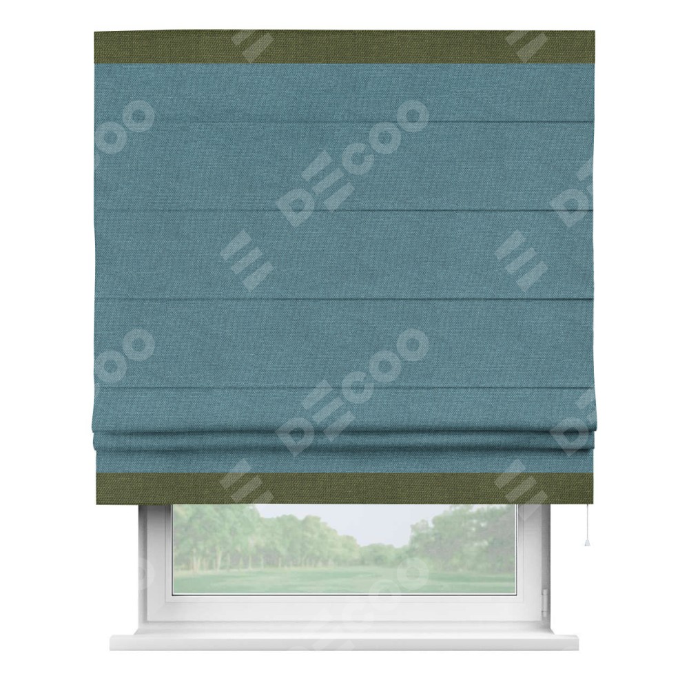 Римская штора «Кортин» для проема, лён димаут светло-синий с кантом Горизонт