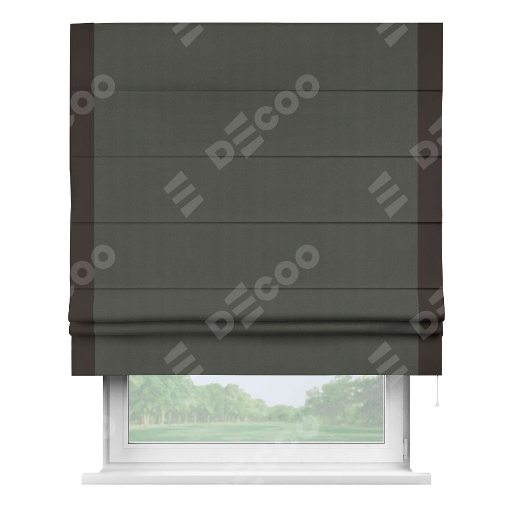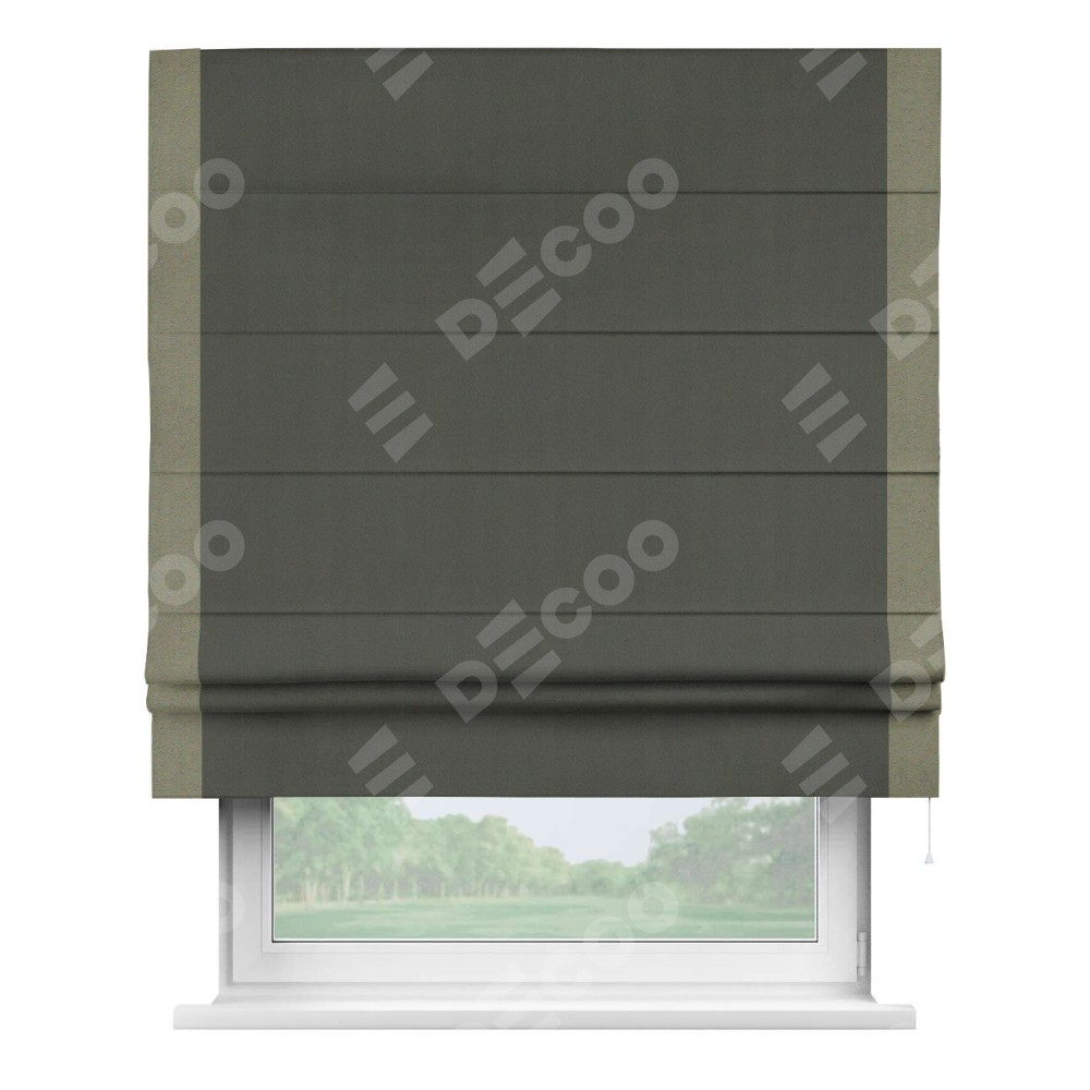 Римская штора «Кортин» для проема, блэкаут однотонный дымчато-серый с кантом Стрим Дуо