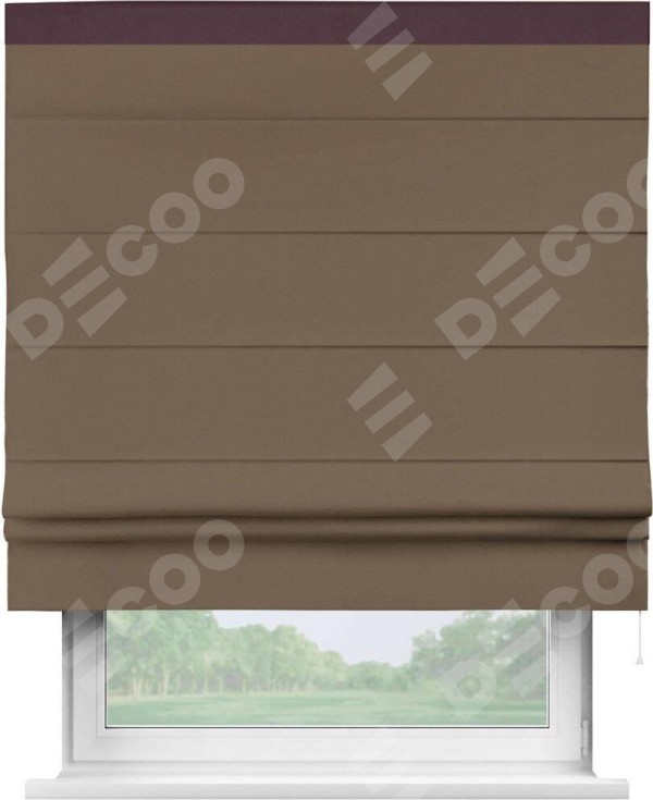 Римская штора «Кортин» для проема, блэкаут однотонный коричневый с кантом Кинг