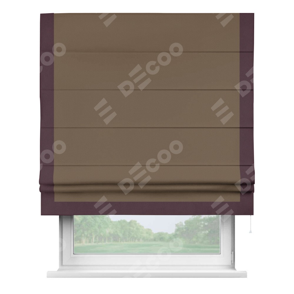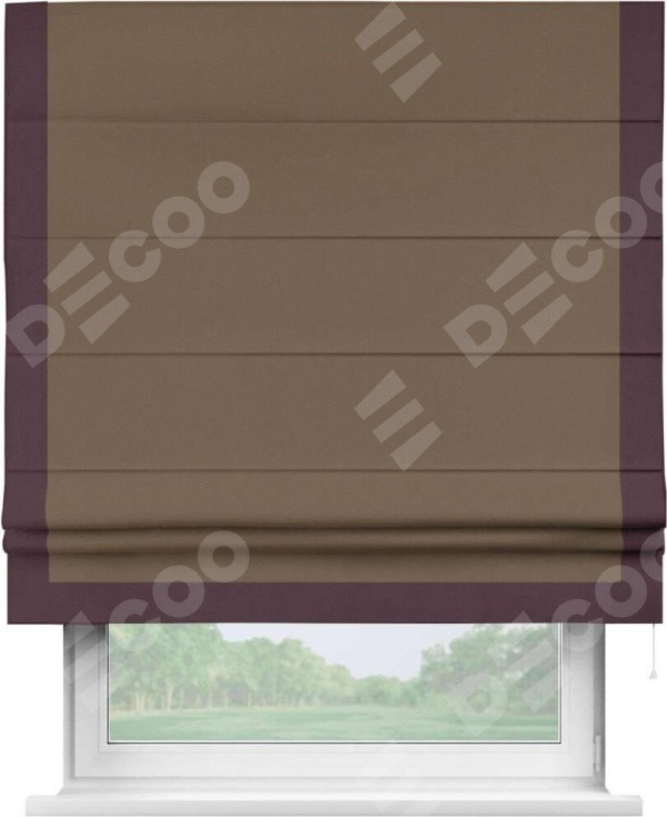 Римская штора «Кортин» для проема, блэкаут однотонный коричневый с кантом Виктория
