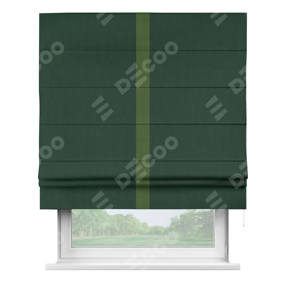 Римская штора «Кортин» для проема, блэкаут однотонный зелёный с кантом Хайвэй