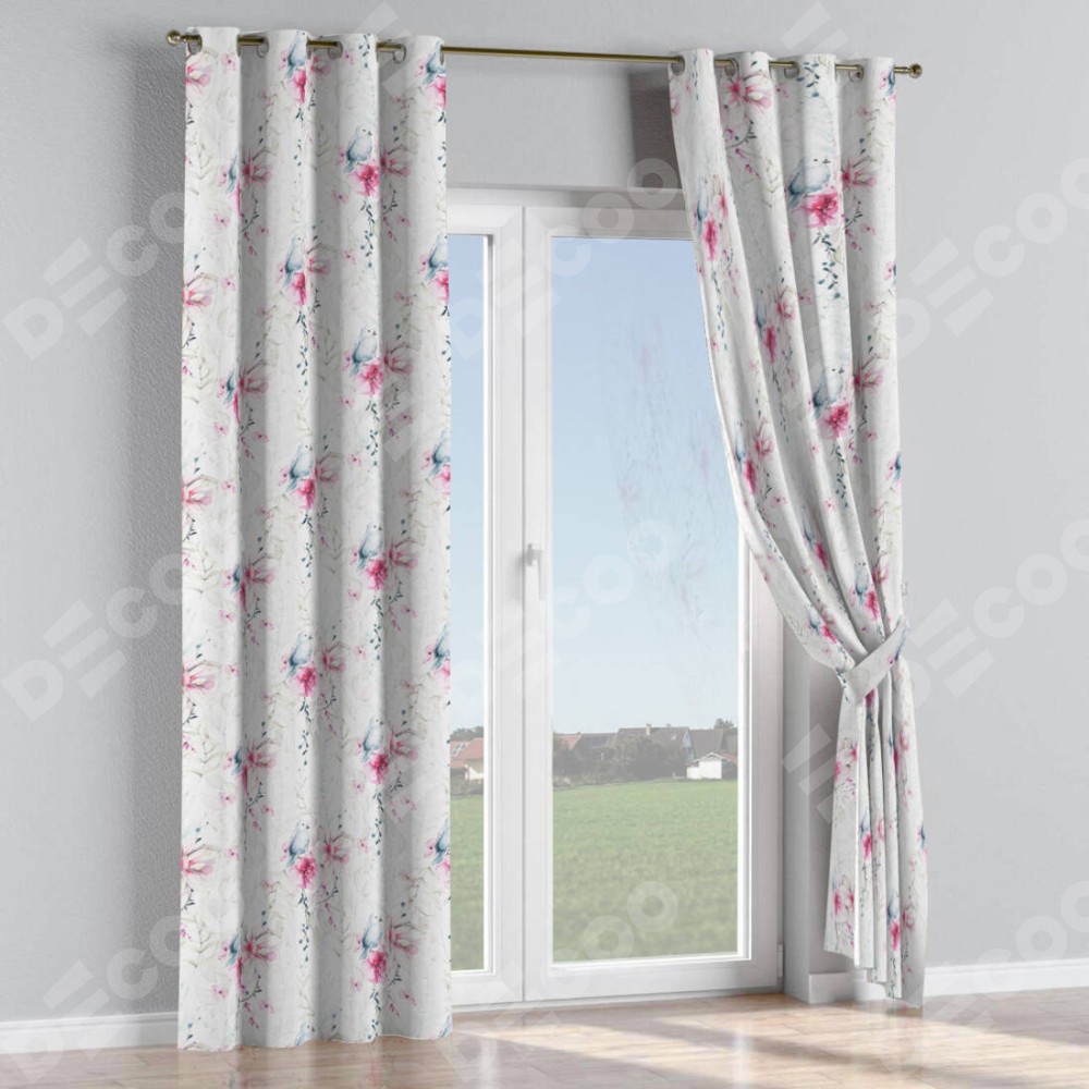 Комплект прямых штор, от производителя «Cortin», пошиты из ткани блэкаут с нанесением сублимационной печати «Мелодия цветов». Данная модель пошита на люверсах, комплектуется на выбор круглым карнизом и подходит для монтажа на стену или потолок. Прямые шторы на люверсах шьются по стандарту с коэффициентом 1/2 (на 100 см. ширины проёма 200 см. ширины ткани), отличительным преимуществом данной модели является простой способ монтажа. Достаточно повесить ее на трубу и штора готова!