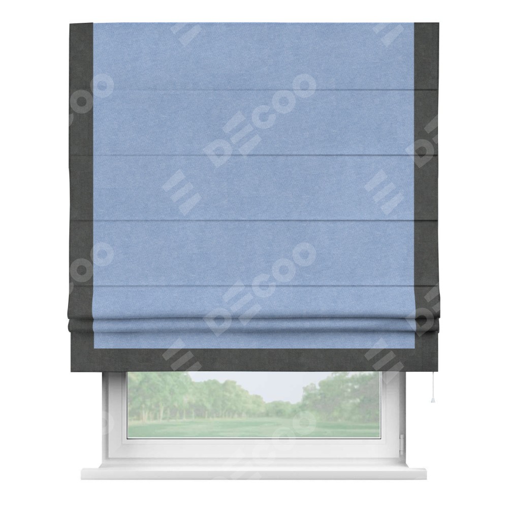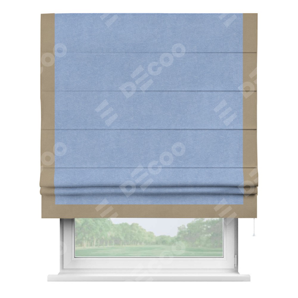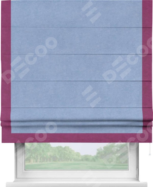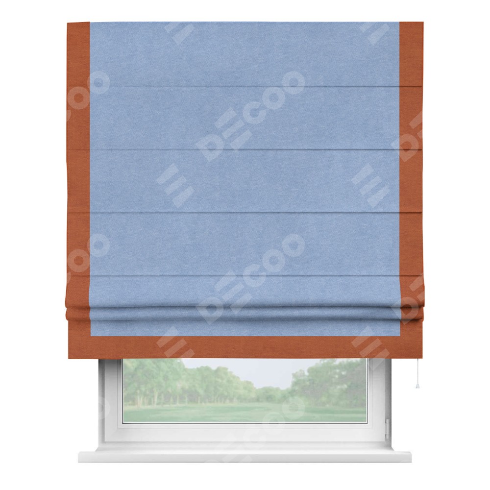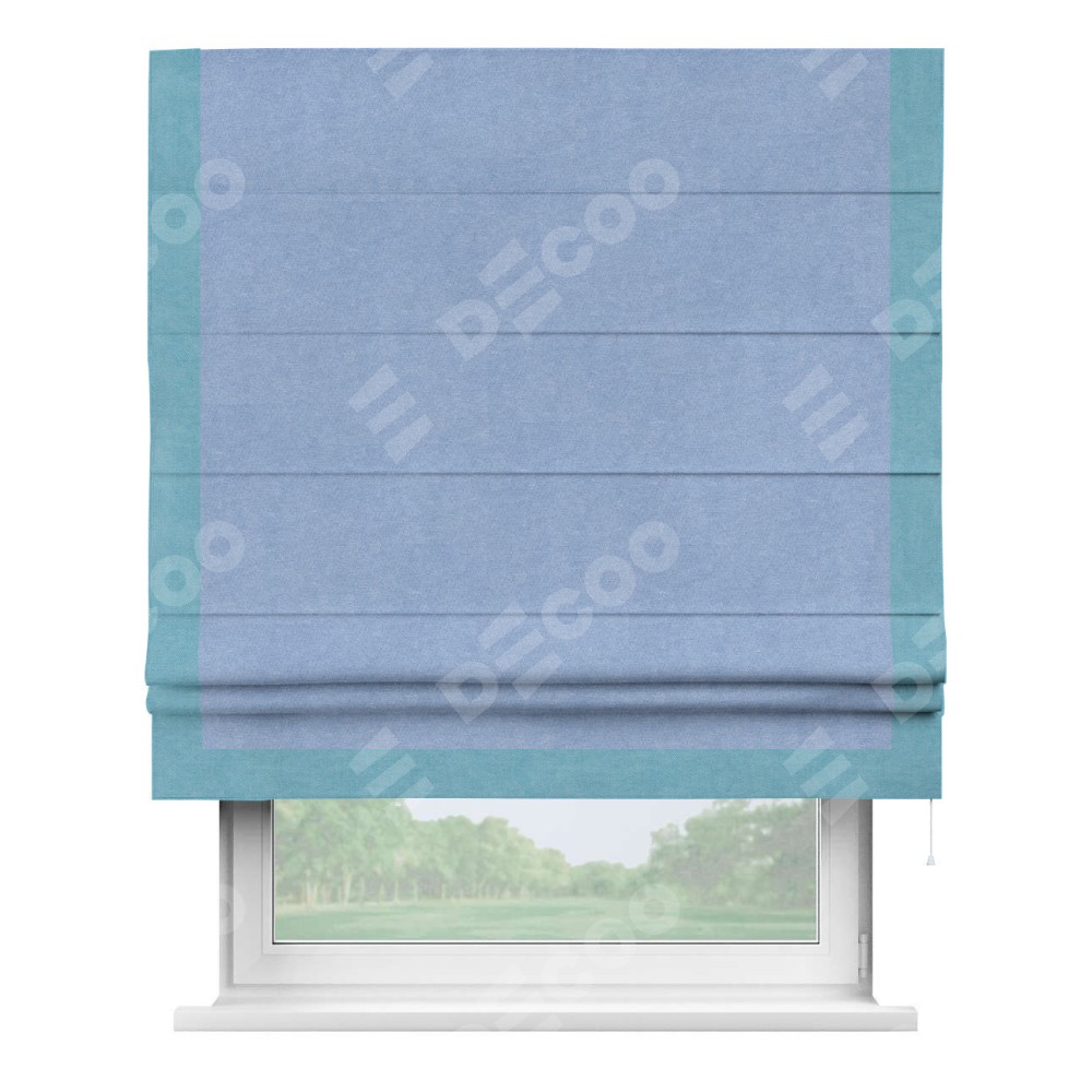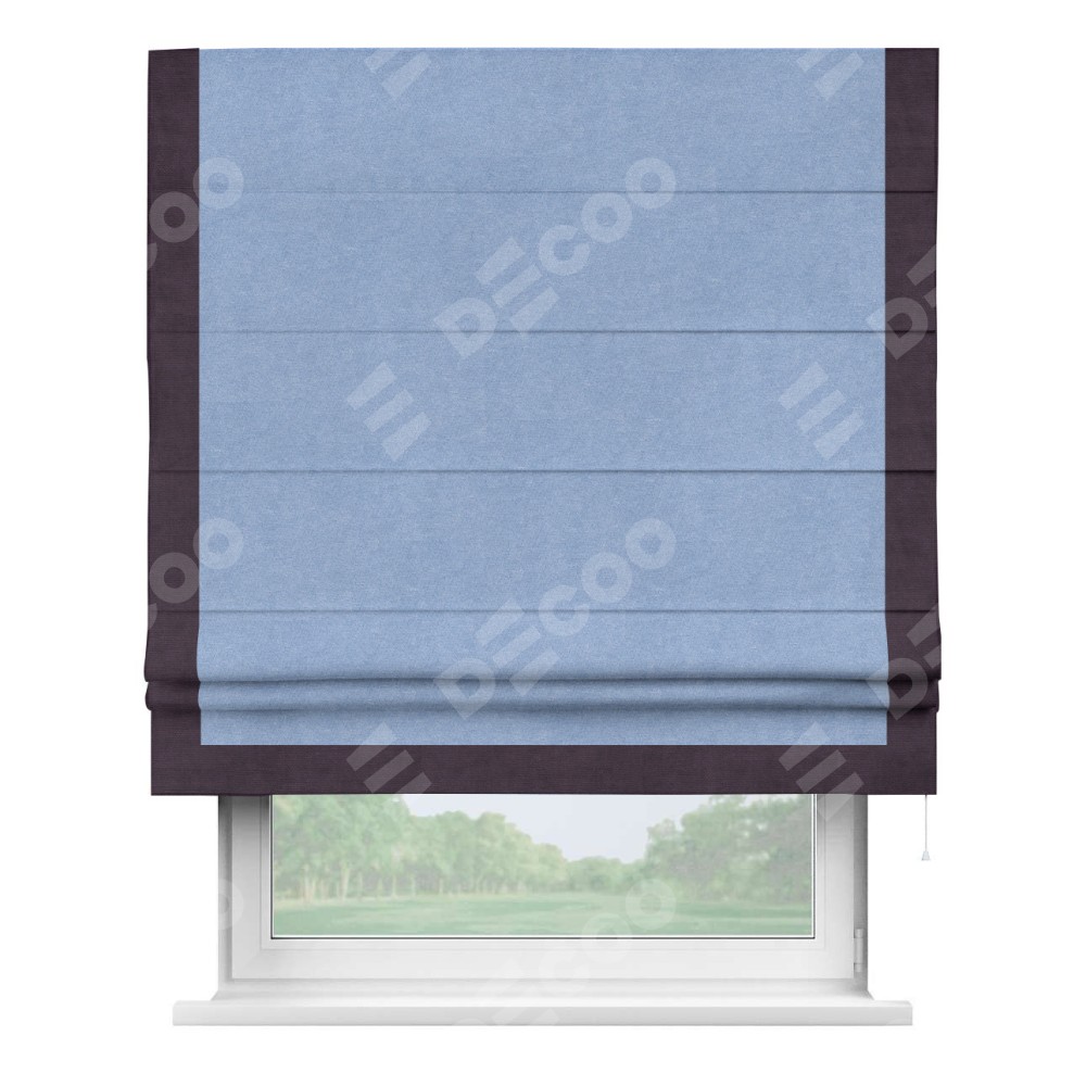 Римская штора «Кортин» для проема, вельвет васильковый с кантом Виктория