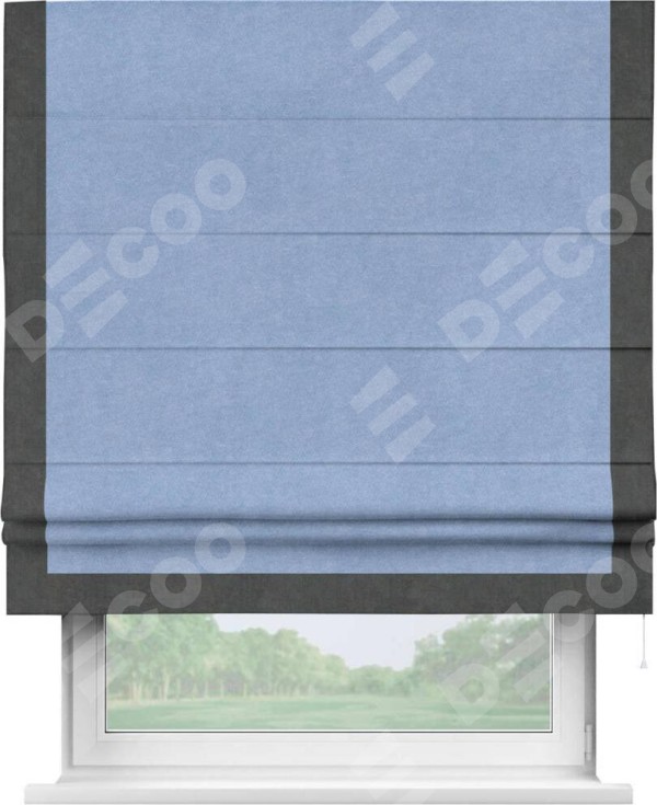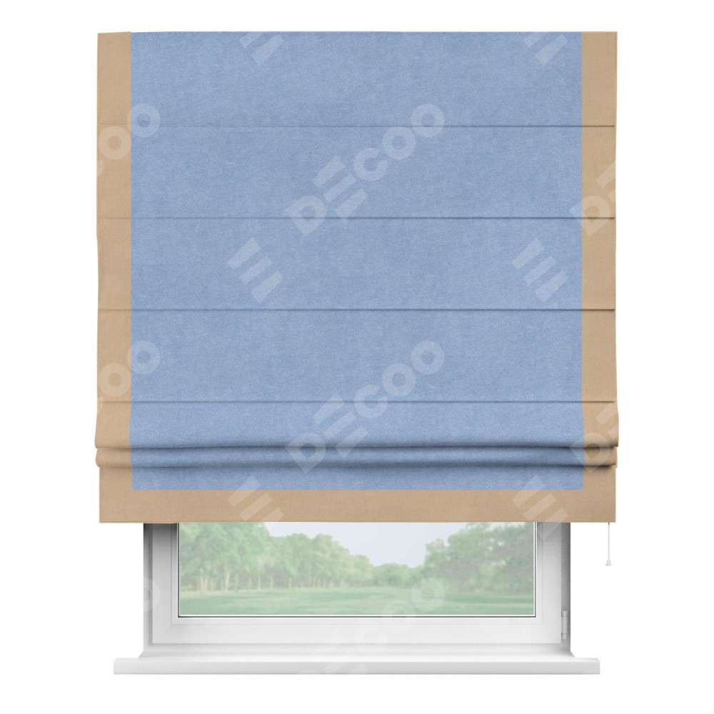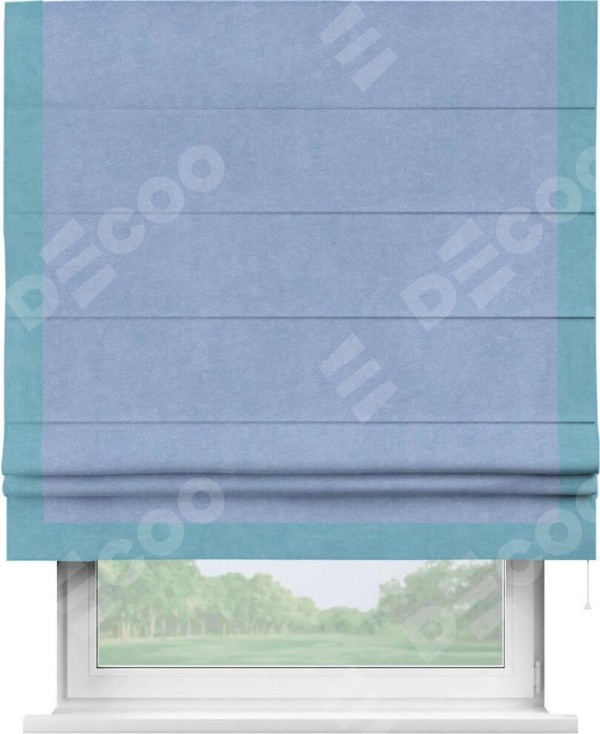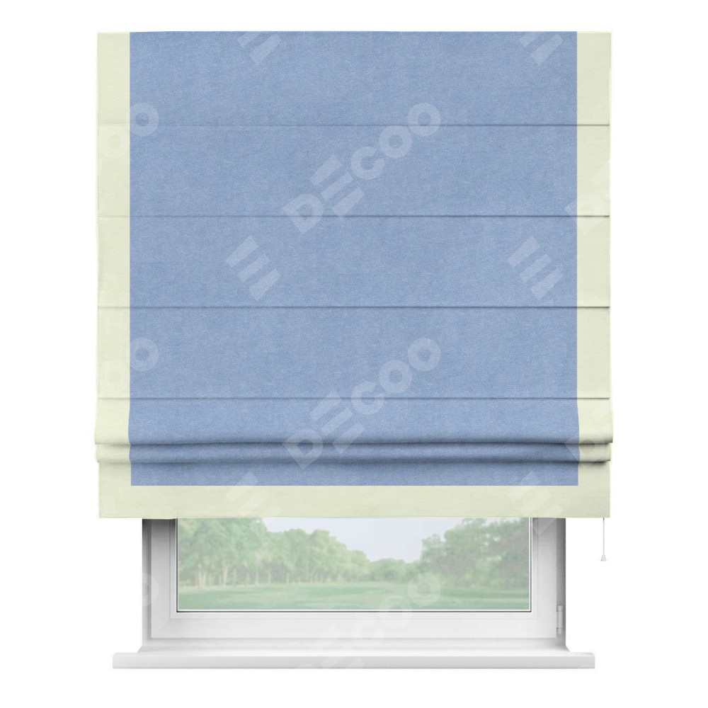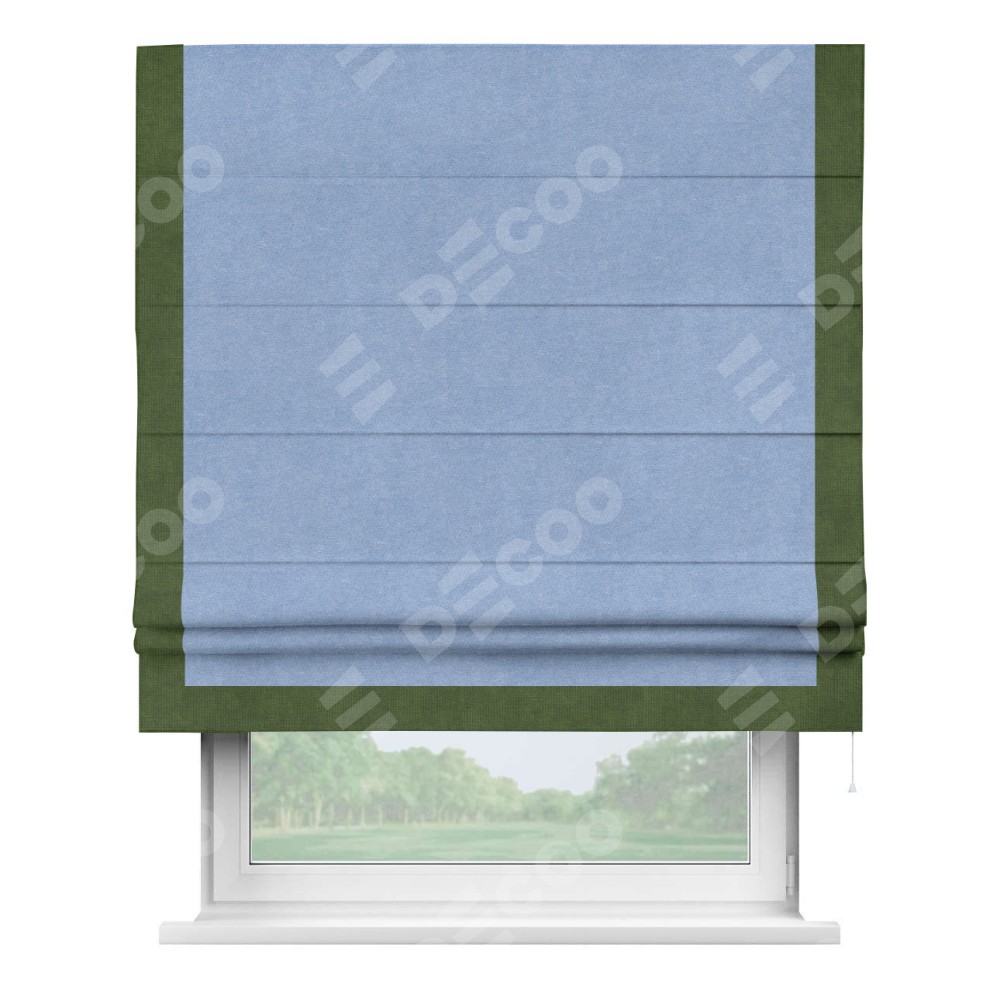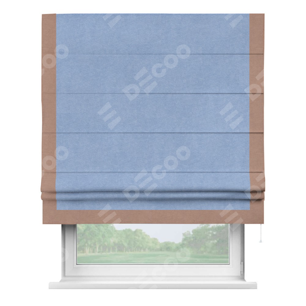 Римская штора «Кортин» для проема, вельвет васильковый с кантом Виктория