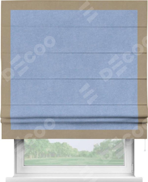 Римская штора «Кортин» для проема, вельвет васильковый с кантом Чесс