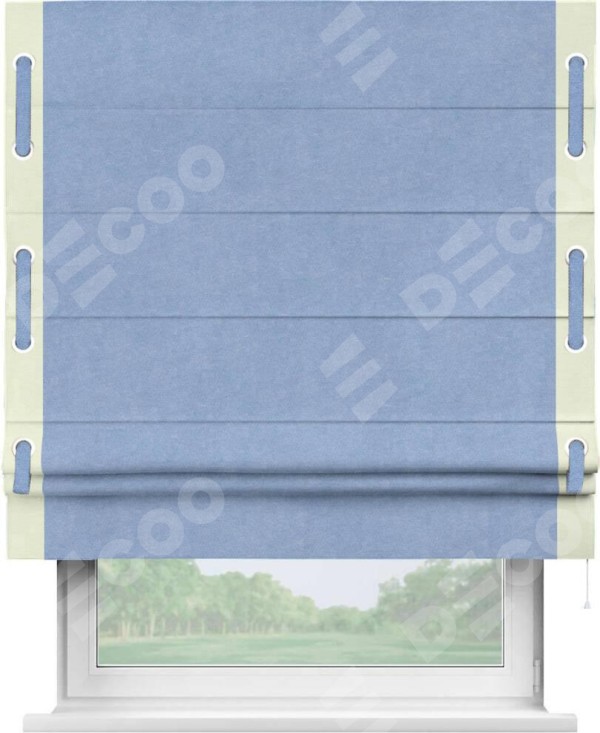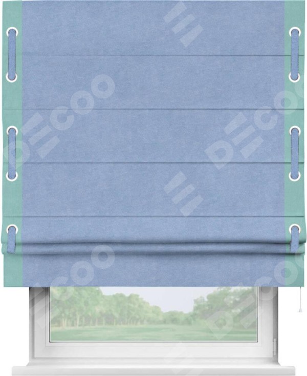 Римская штора «Кортин» для проема, вельвет васильковый с кантом Стрим Дуо (люверсы с пояском)