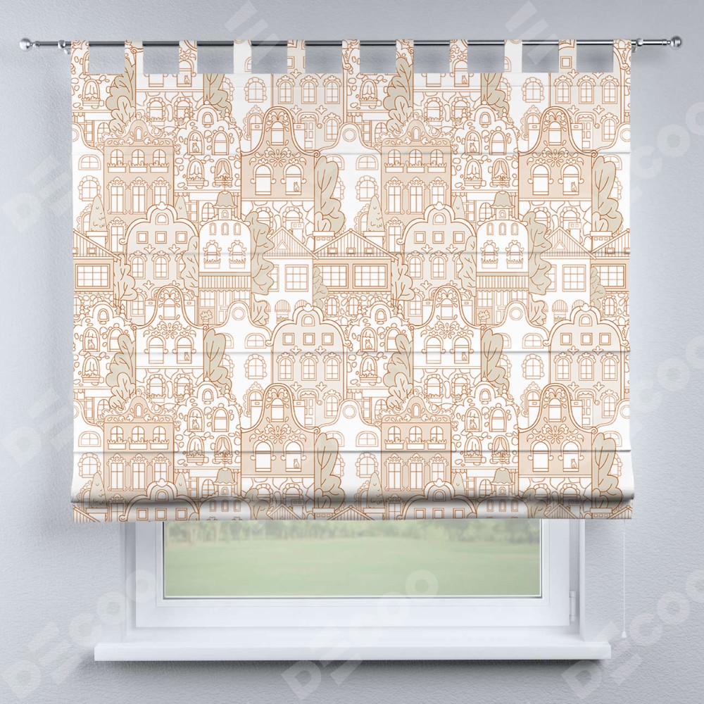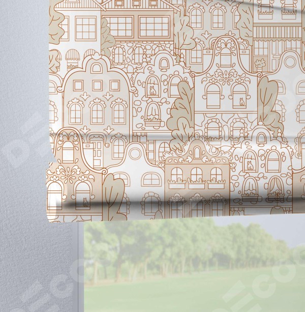 Римская штора производителя «Cortin», используется для проёма, пошита из ткани блэкаут с нанесением сублимационной печати «Милый городок». Данная модель пошита на петлях, комплектуется на выбор круглым карнизом и подходит для монтажа на стену. Римская штора на петлях имеет простую систему регулировки высоты, отличительным преимуществом данной модели является простой способ монтажа. Достаточно повесить ее на трубу и штора готова!