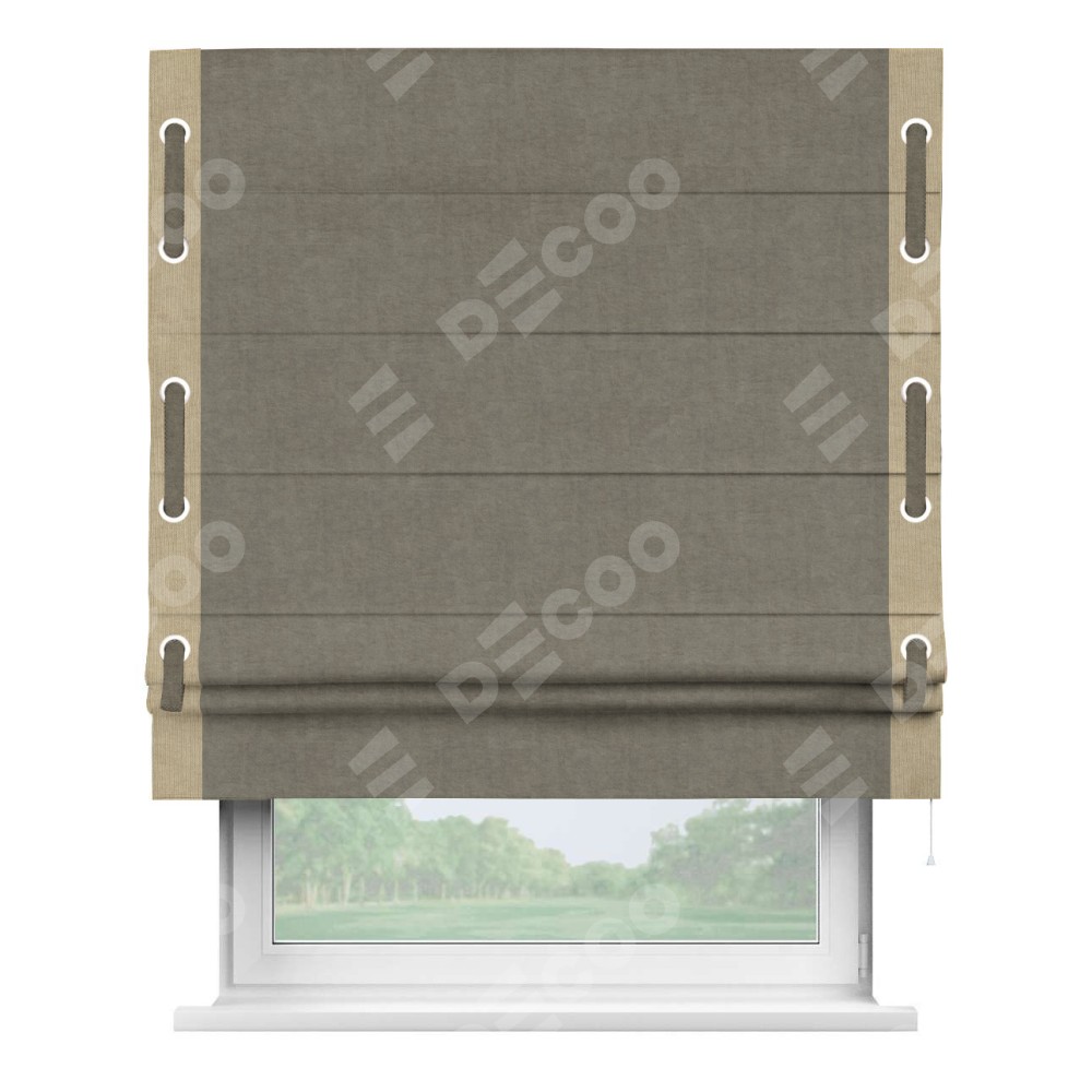 Римская штора «Кортин» для проема, канвас серо-бежевый, с кантом Стрим Дуо (люверсы с пояском)
